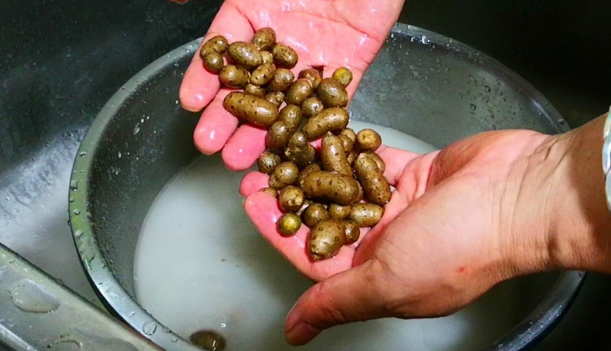這不,今天一早就來逛早市,想着看看能不能發現什麼新鮮玩意能換一換口味。你還別說,真讓我碰上了,它就是現在正當季的山藥豆!山藥豆一般在每年的11份左右成熟上市,它是山藥藤蔓上結出的小疙瘩,圓滾滾的,跟小土豆、小豆子似的,不是山藥的根莖(我們常喫的山藥塊莖是埋在地下的部分),相當於山藥的“種子”,多長在藤蔓的葉腋處,呈圓形或橢圓形,每年的秋末藤蔓枯了就能採摘。