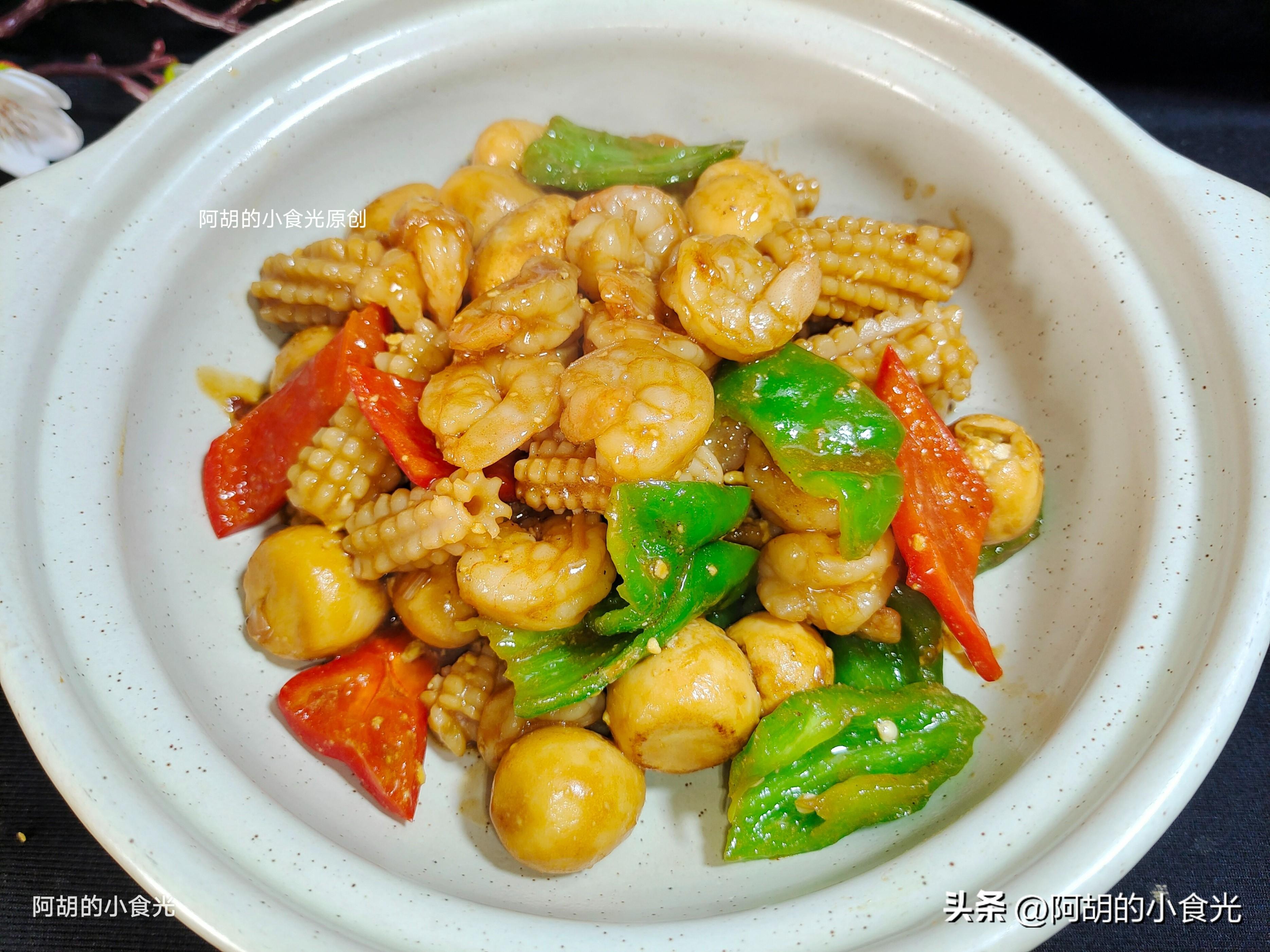 我是阿胡的小食光,一個喜歡研究把普通食材做出更多花樣美食的饕餮小食客!今天這道炒菜很是開胃下飯,食材也很多樣,有魷魚、鵪鶉蛋和蝦仁,再搭配青紅椒一塊炒一炒,下飯無敵了。如無特殊情況,我每天都會按時分享一道家常美食的做法,在此特別感謝您的每一個贊和“小紅心”,明天的內容依舊很精彩,敬請期待!