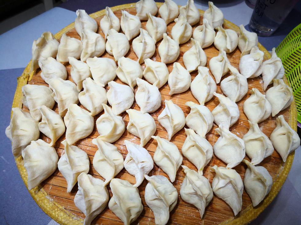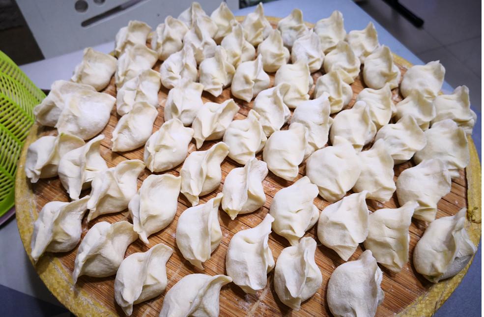 提前燒一鍋開水,水開後下入餃子,用漏勺背面輕輕推動餃子,防止沉底粘鍋,水再次沸騰時,淋入一小碗涼水,也就是我們所說的“點水”,點水能讓餃子內外受熱均勻,避免外熟裏生,還能讓餃子皮更筋道好喫。