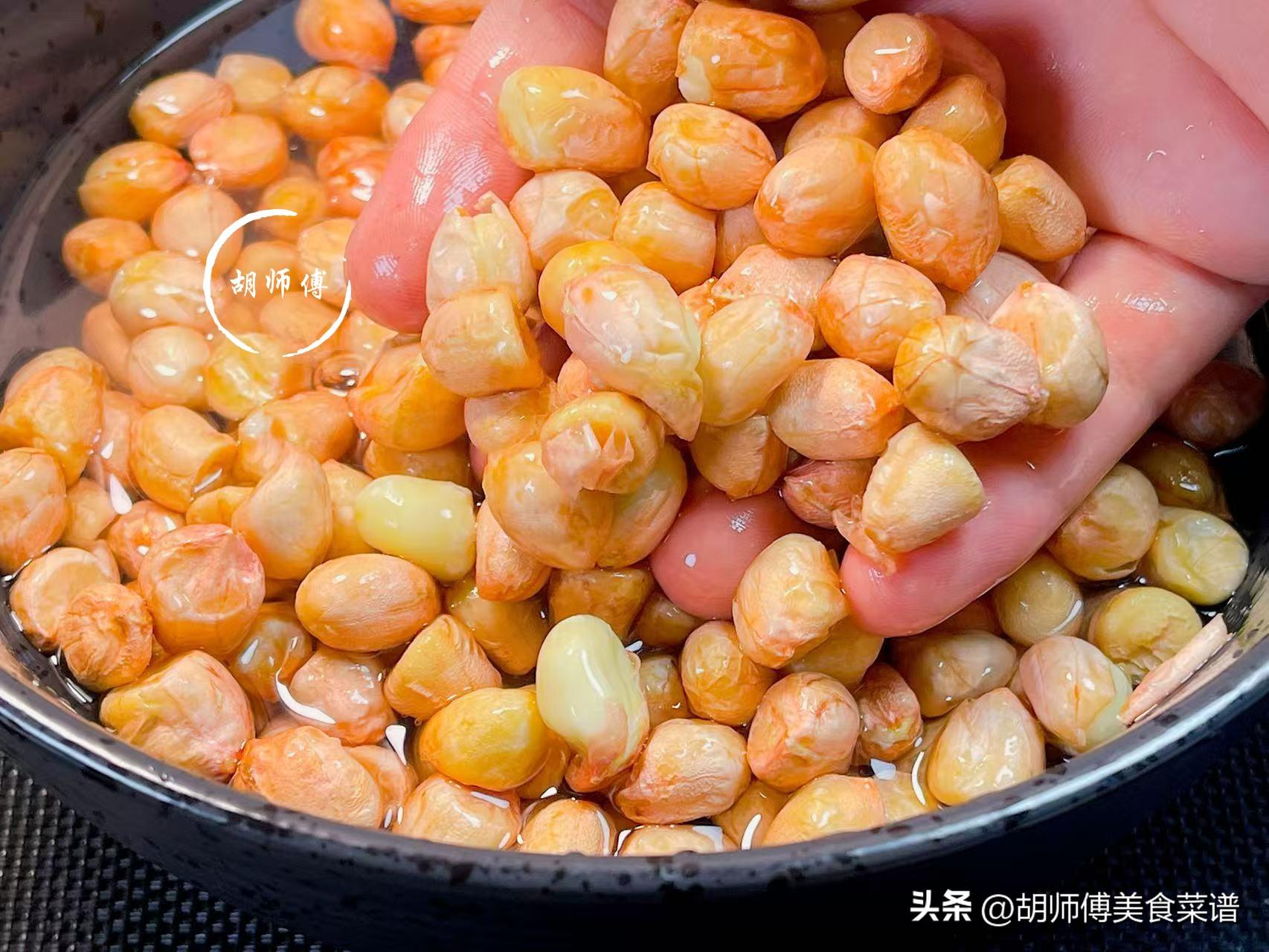 第二步:把花生米放入冷水中浸泡15-20分鐘,直到花生表面的皮有點變皺,就代表花生泡好了,此時再把花生撈出,然後再用自來水將花生沖洗乾淨備用。