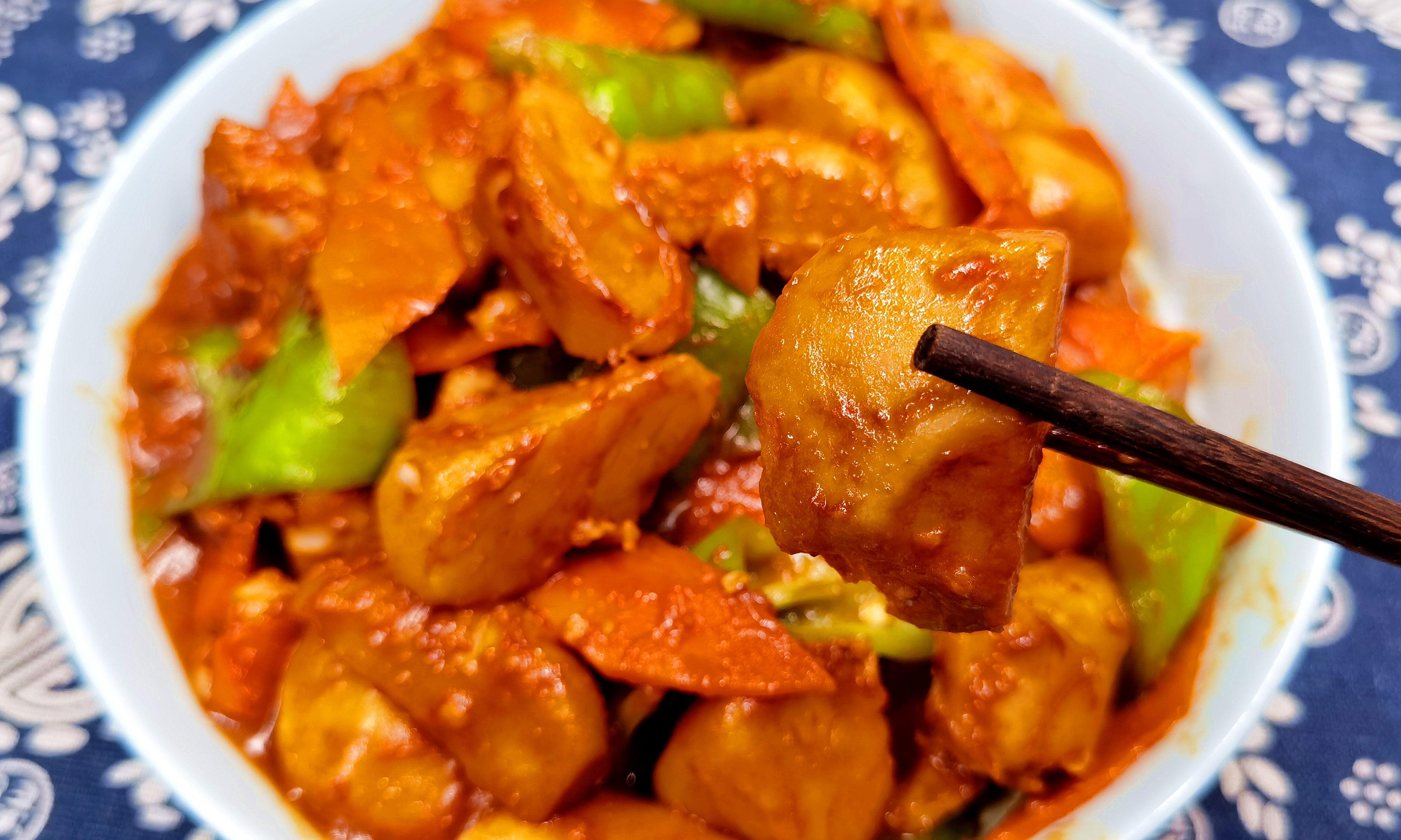 點評:這道菜醬香濃郁,芋頭吸飽了湯汁後軟糯入味,配上青椒的清爽,特別下飯!做法和紅燒土豆類似,但芋頭更糯更香,適合全家人的口味。