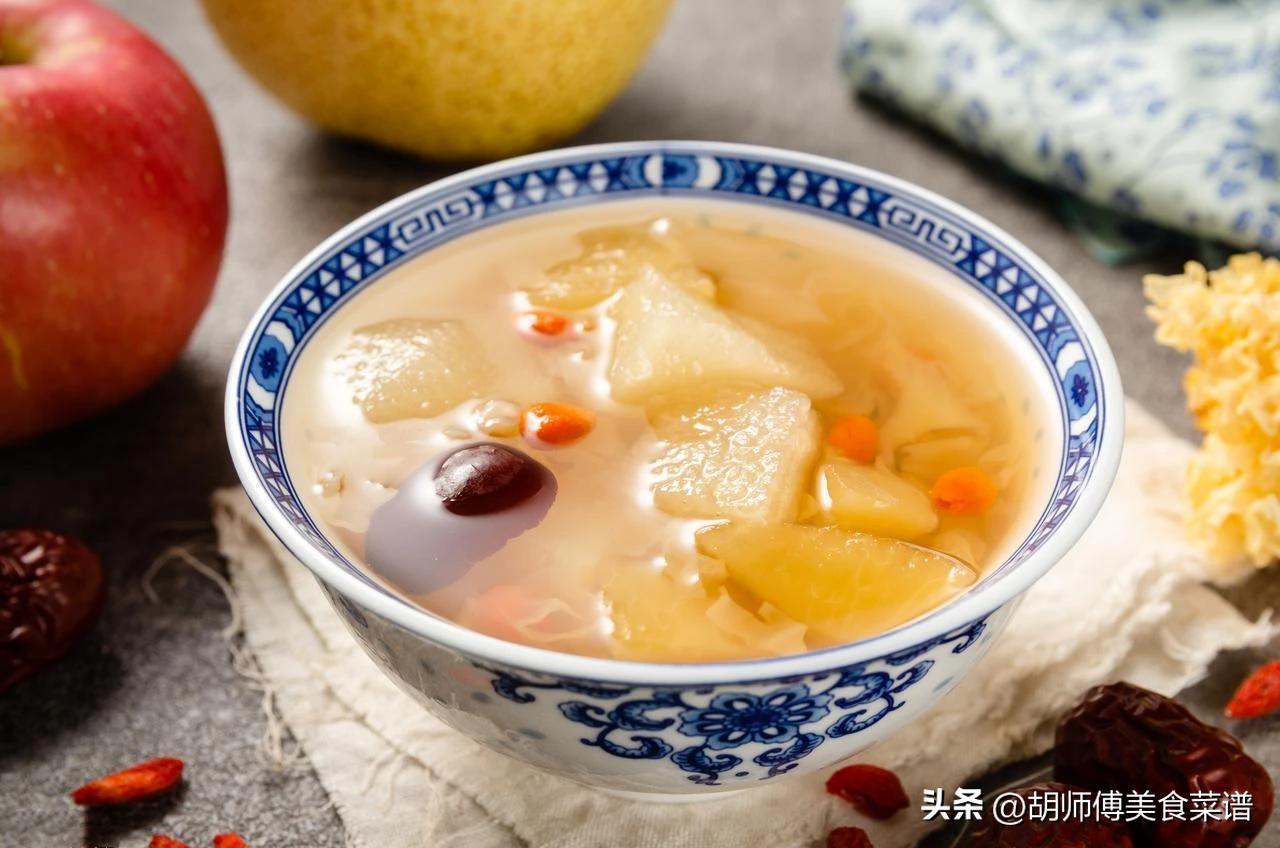 【食材準備】:蘋果1個、雪梨1個、銀耳20克、紅棗、枸杞、冰糖、清水適量。