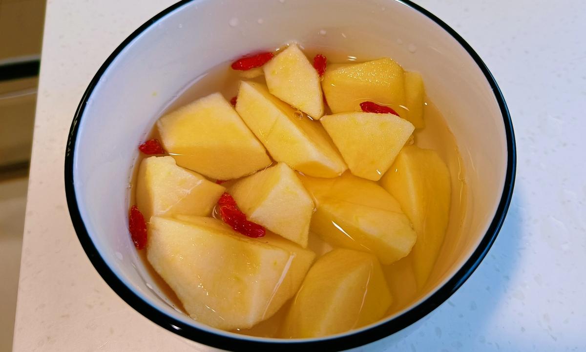 蘋果富含維生素C、鉀元素,枸杞含枸杞多糖,兩者同蒸後營養更易析出,可以補充日常所需營養,幫助提升免疫力,減少小感冒等不適。