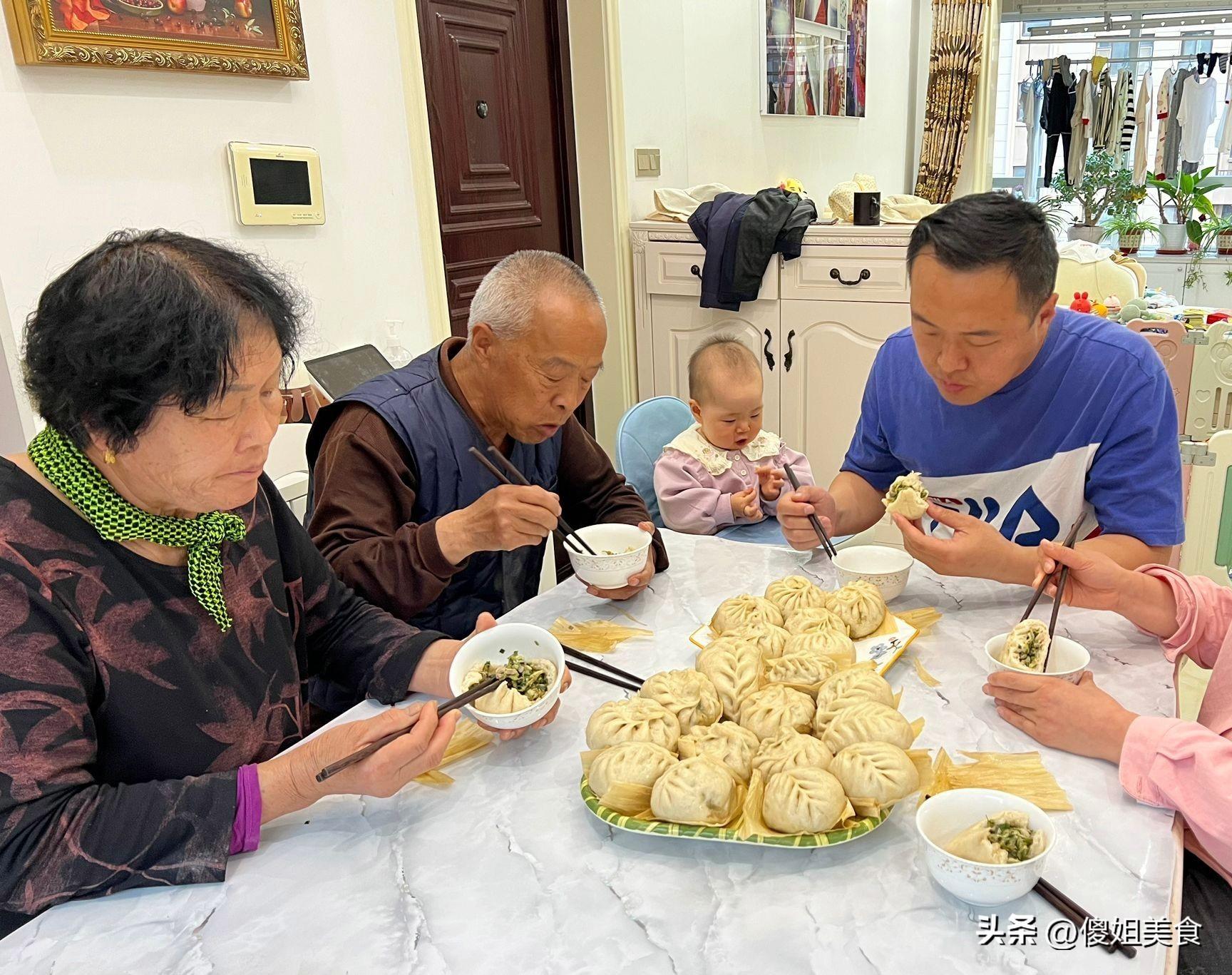 山東一家四口的蒸包子火了,一人一個真過癮,網友:你家喫飯真香