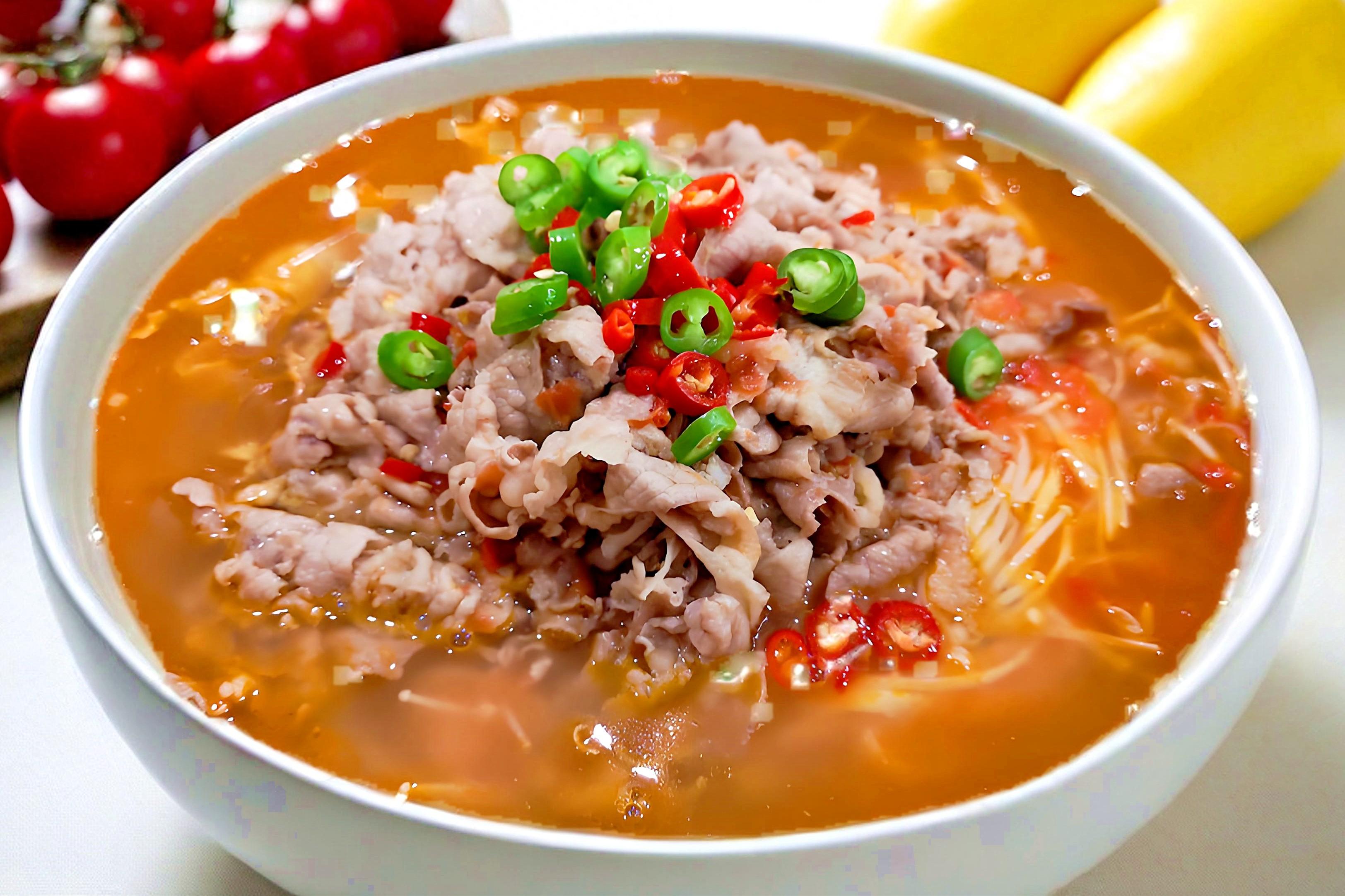 牛肉性溫,富含蛋白質和鐵元素,既能增強體力,又能促進血液循環,是冬季養胃補氣血的好選擇。搭配酸甜開胃的西紅柿和金針菇,做成熱騰騰的酸湯肥牛,一碗下肚,渾身都暖了!