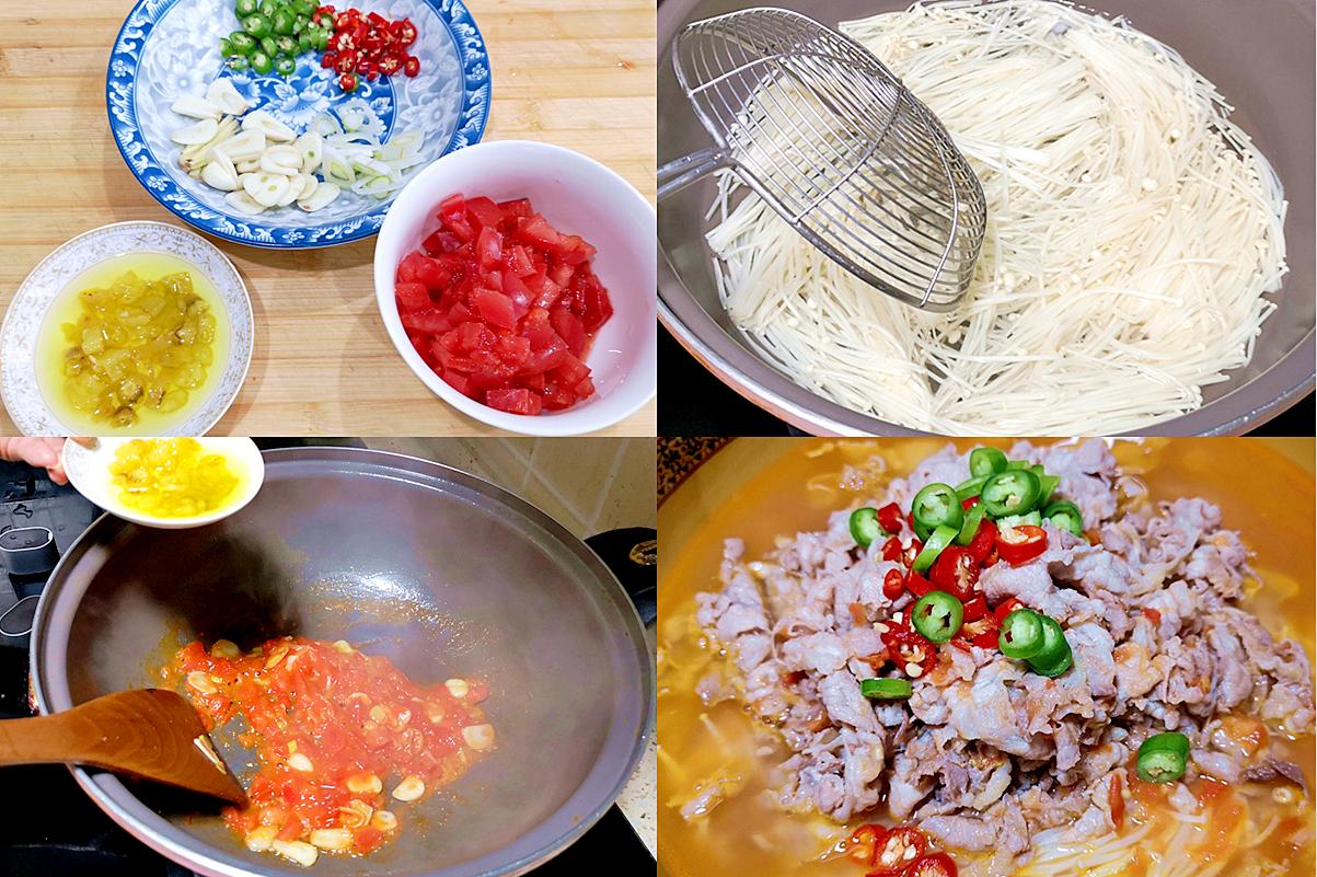 點評:這鍋酸湯肥牛,湯鮮肉嫩,酸辣開胃,金針菇吸飽了湯汁,牛肉片滑溜不柴。冬天來一碗,暖胃又提神,全家人都愛喫!
