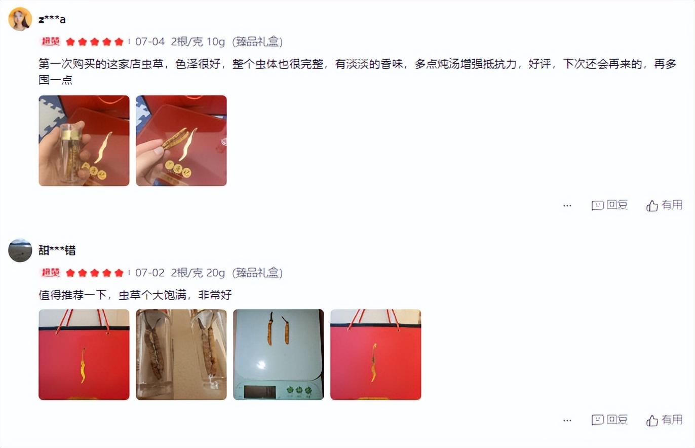 後續更經過7道人工臻選關卡,層層篩選、優中選優,每10根僅保留1根達標產品。最終呈現在消費者面前的,是蟲體粗壯飽滿(1-2根/g)、環紋清晰深邃、草頭自然漸變、色澤溫潤有光澤的精品蟲草,每一根都凝聚着匠心與誠意。