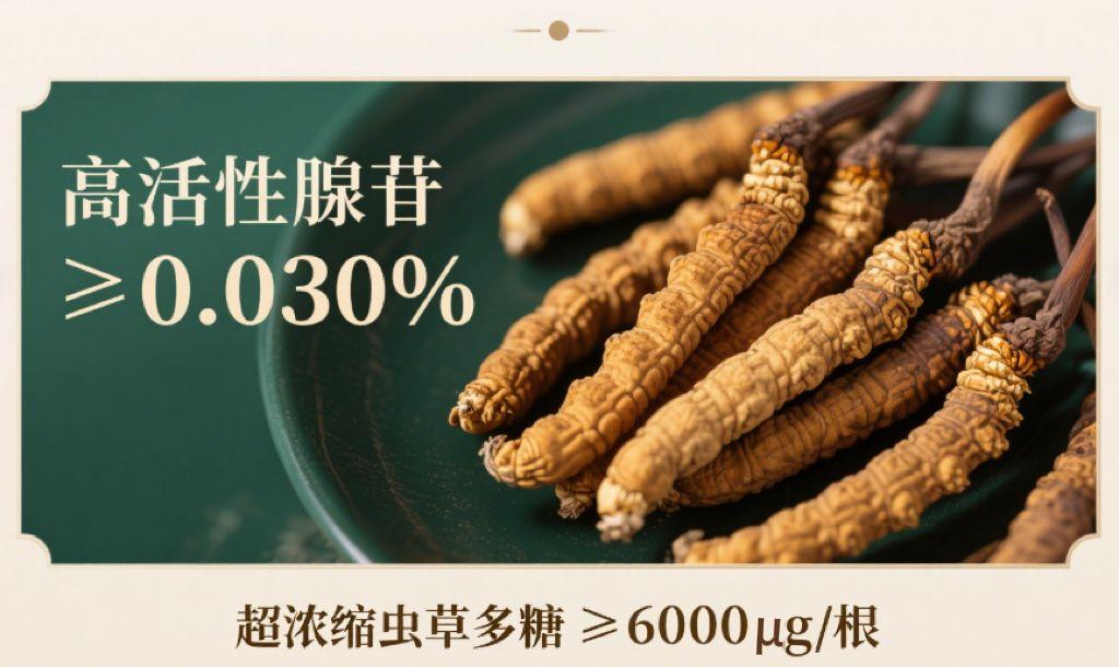 真正的高端蟲草,終將以成分與效果說話。經權威HPLC檢測認證,芝康紀冬蟲夏草的高活性腺苷含量≥0.030%,是普通蟲草的2-3倍;蟲草多糖單根含量更是高達≥6000μg,相當於普通蟲草的6倍,經科學實驗驗證,能有效增強機體活力,爲疲憊的身體注入自然能量。