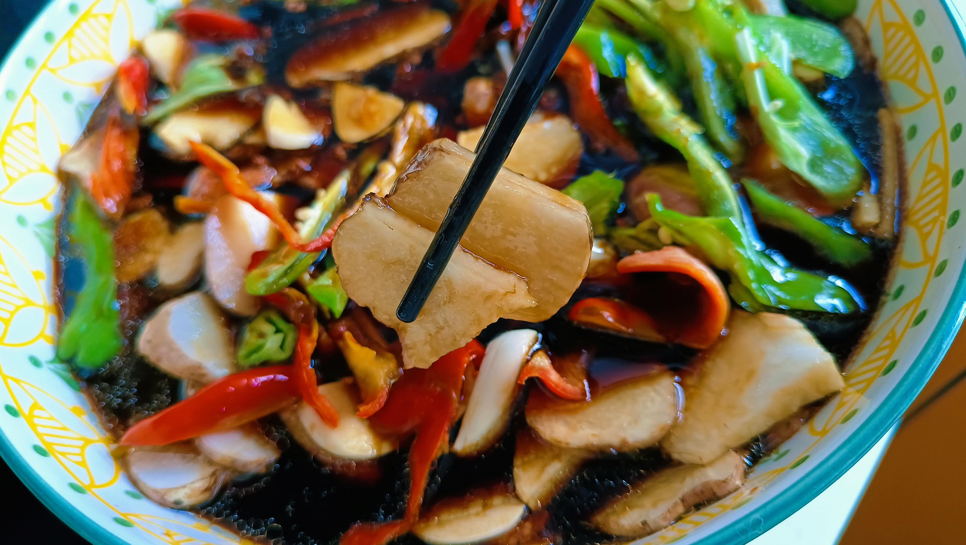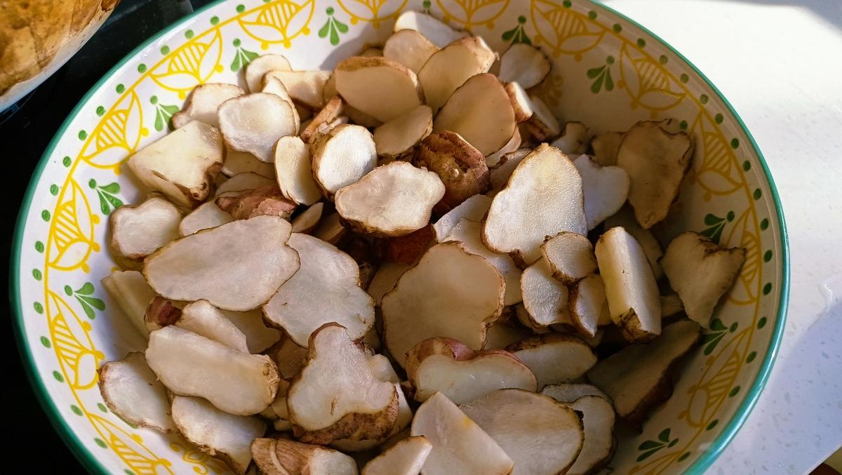 1、把鬼子姜放在流動的水下,用小刷子仔細地刷洗每一個角落,把表面的泥土和雜質都清洗乾淨。清洗乾淨後,把鬼子姜晾乾表面的水分,或者用廚房紙巾擦乾,再切成薄片。