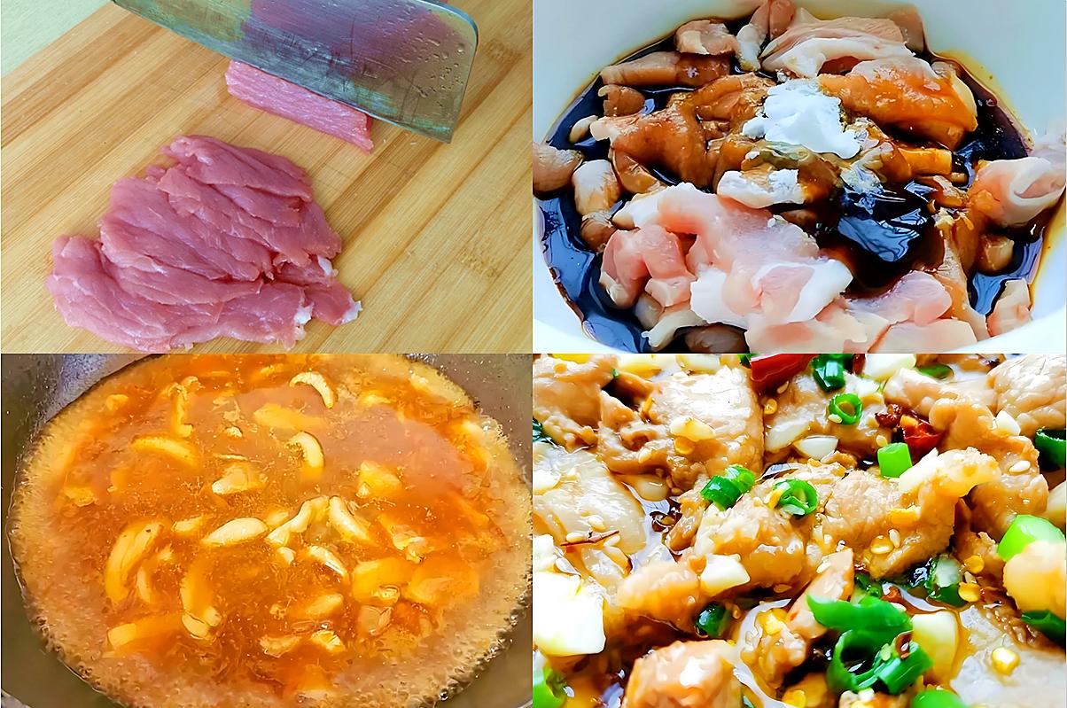 1. 裏脊肉切成薄片,加一個蛋清、適量澱粉、少許料酒和鹽,抓勻醃製15分鐘,這是肉片嫩滑的關鍵。
