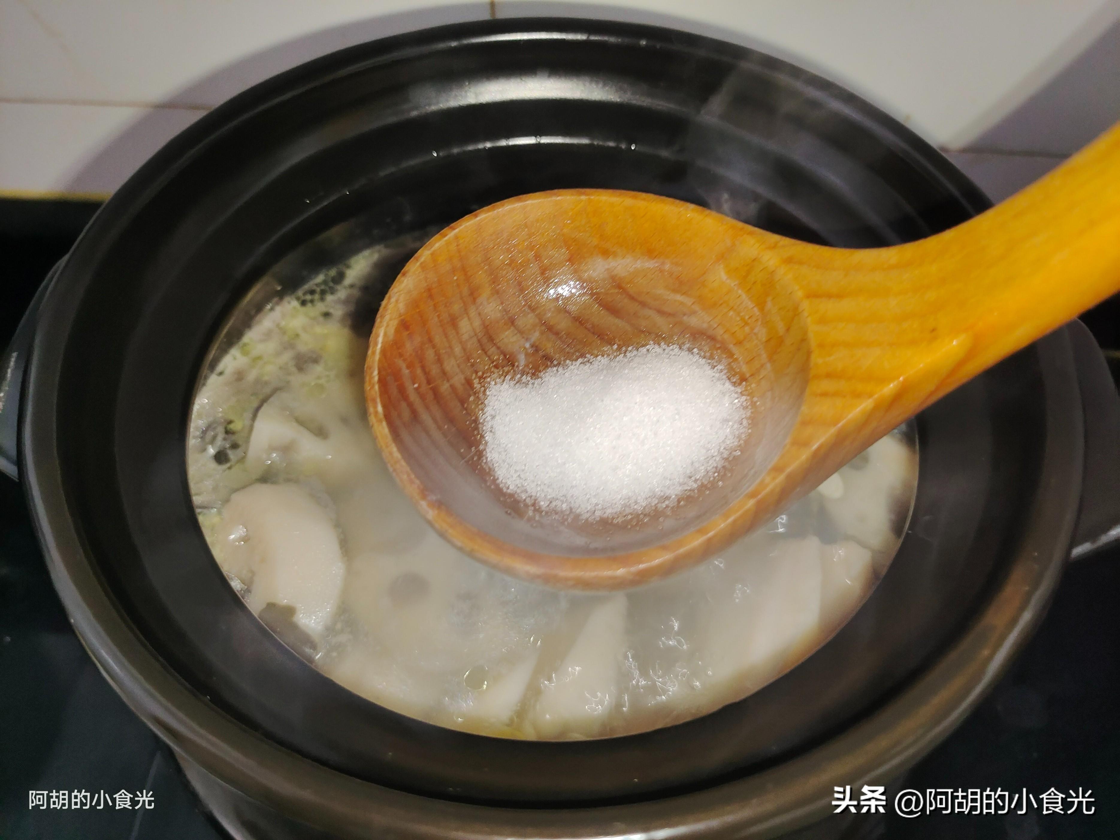 第四步:用最大火將其快速煮開,而後轉爲最小火加蓋慢慢煲一煲,時間差不多爲三十分鐘,開蓋後再加入一些食鹽來調味,加蓋後繼續煲煮十分鐘左右。