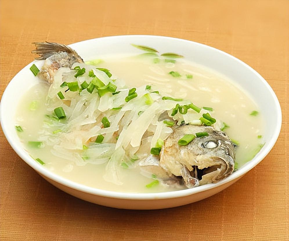 推薦喫法, 蘿蔔絲鯽魚湯。一種經典美食,不僅滋補身體,還預防流感,增強免疫力。