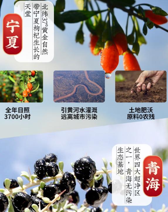 我第一次喝固本堂是在秋末,味道深沉。它來自青海祁連山南麓,光照強、晝夜冷暖差顯著,更利於花青素積累。黑枸杞成分類平均約:花青素260mg/100g,多糖約270mg/100g,屬於均衡型。入口微澀,像黑咖,一瞬間讓人安靜下來。適合專注工作、讀書、熬夜後調整節奏。