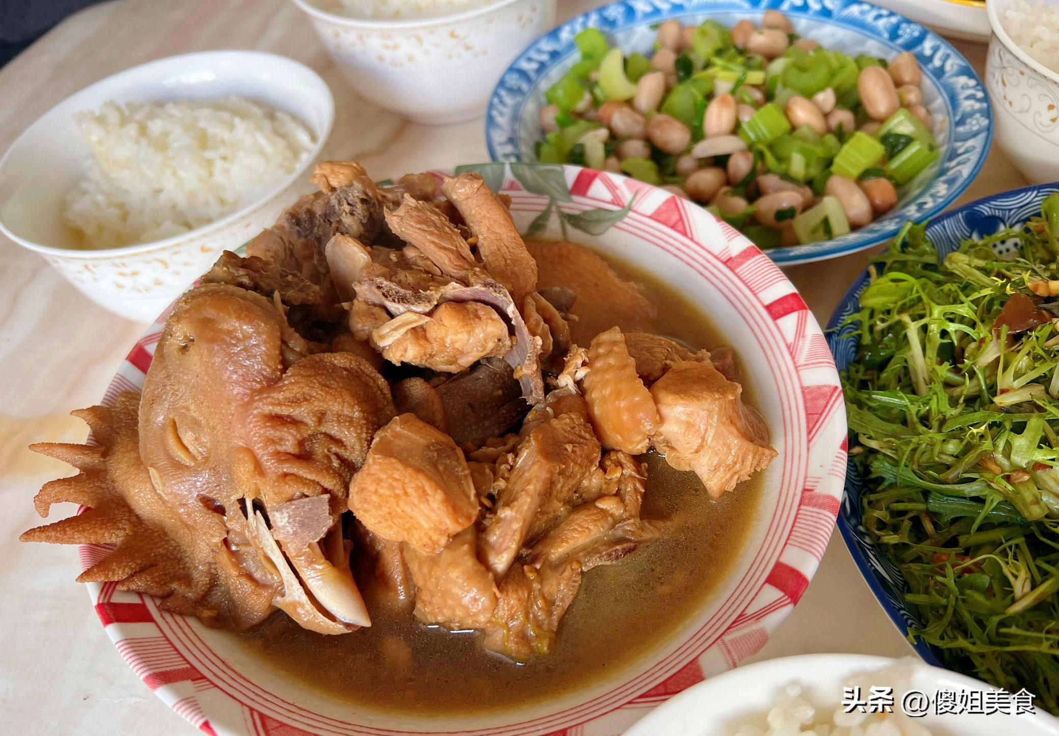 有了這些,中午的菜就不用愁了,燉個雞,再做兩個涼拌菜,一家五口就夠喫了。這自家養的土雞啊,就是不一樣,燉出來滿屋飄香,那味道,絕了。