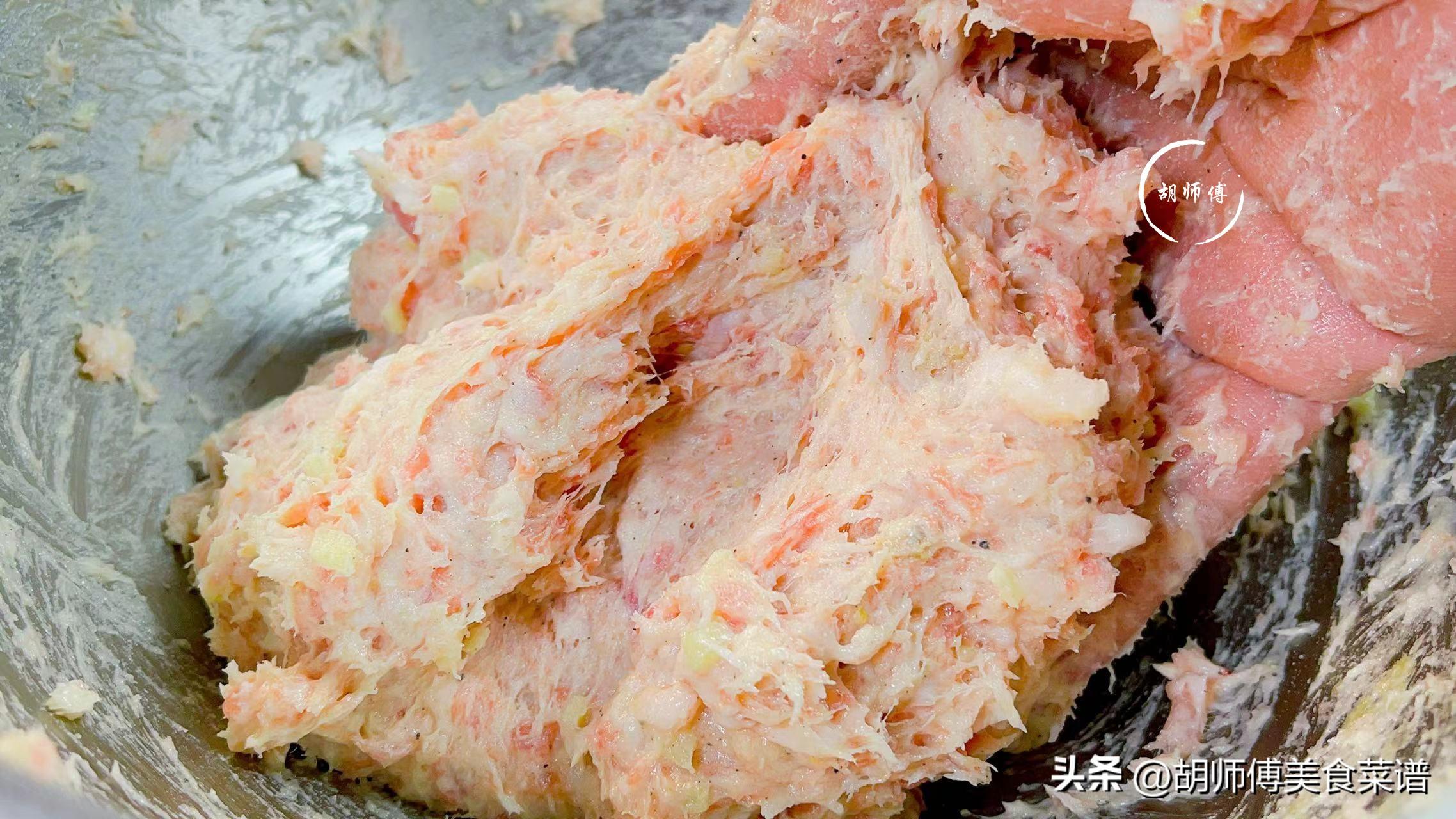 第二步:把肉末、雞蛋、麪粉、薑末、胡椒粉、食鹽、雞精全部都放入盆中,然後快速攪拌肉餡,大概攪拌10分鐘左右,直到肉餡非常有勁,就代表肉丸攪拌好了。