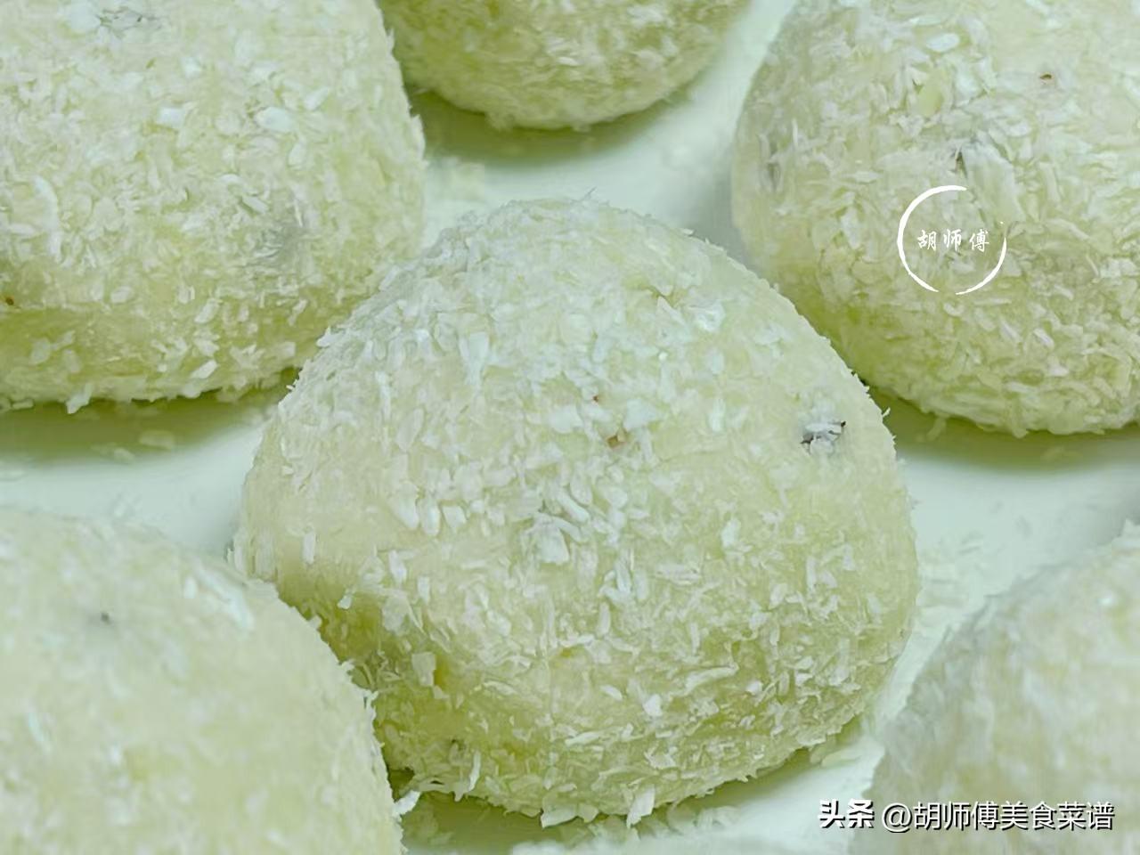 第四步:將按壓的山藥泥捏成小丸子,然後放入到椰蓉中滾一圈,椰蓉山藥團就做好了。做好的椰蓉山藥團必須當天喫完,放久了容易滋生病菌。