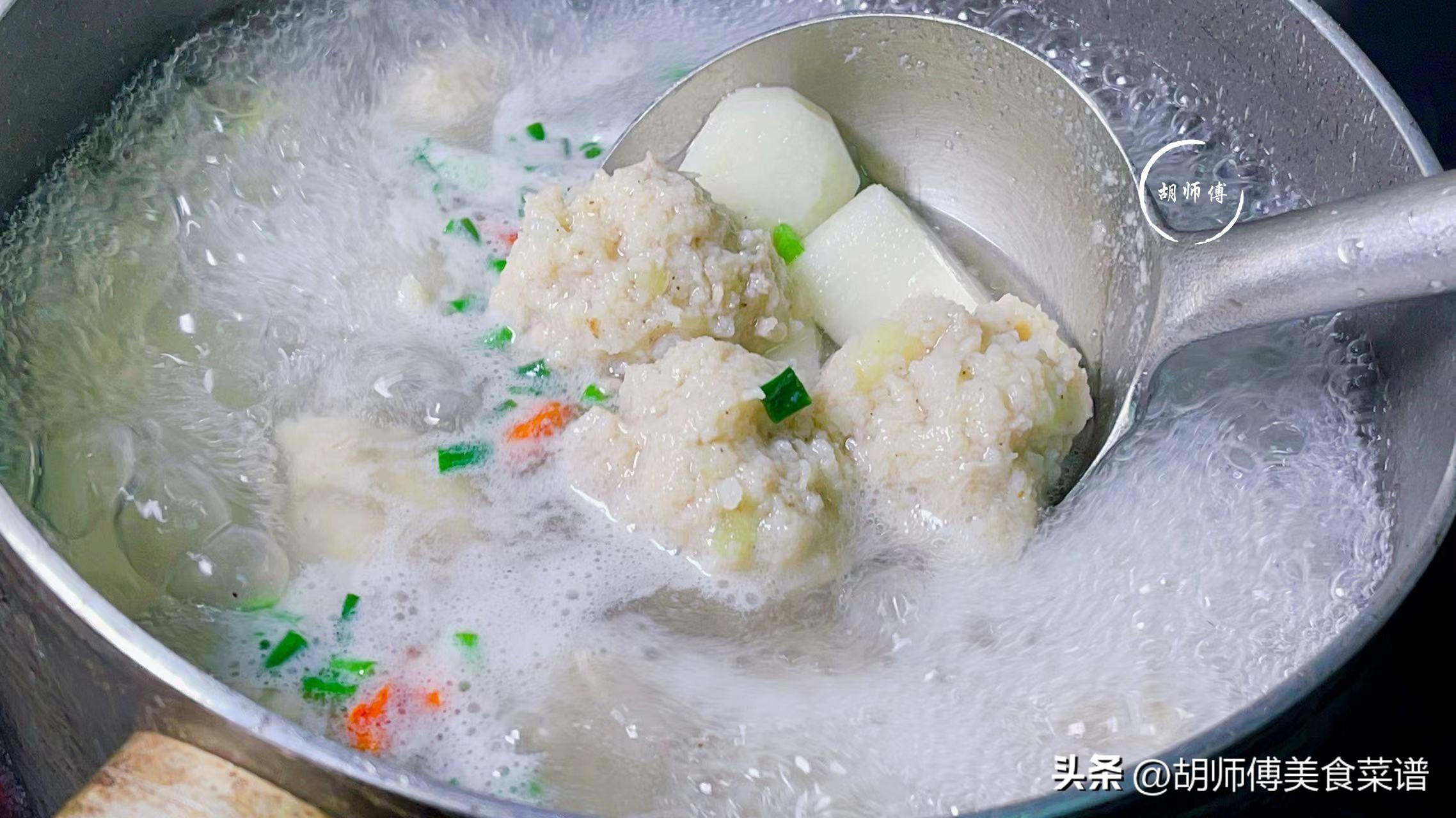 第四步: 將切好的山藥和少許食鹽放入肉丸中,繼續煮5分鐘後,最後撒上一點枸杞和蔥花即可關火食用。