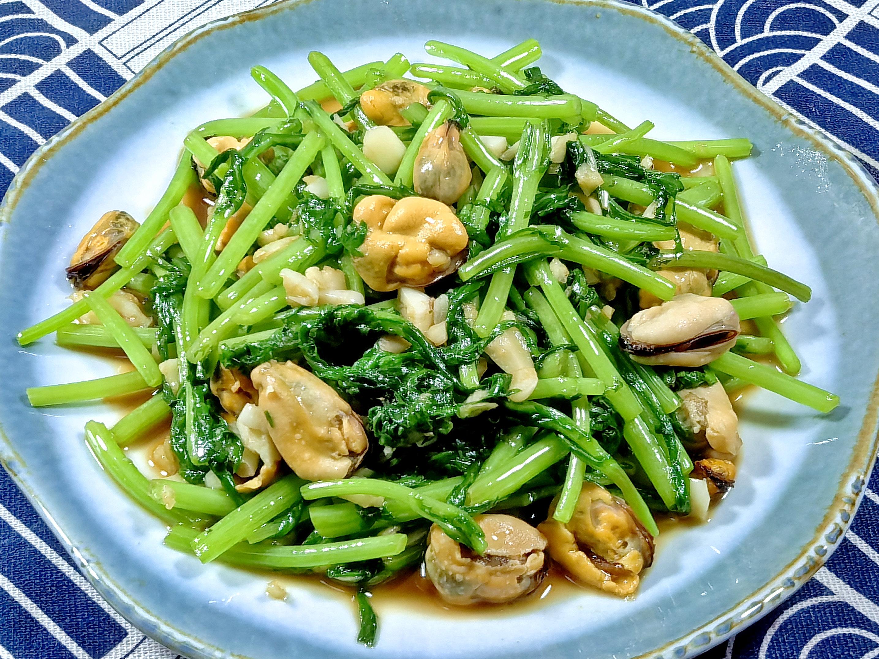 一、蒜蓉茼蒿炒海虹肉