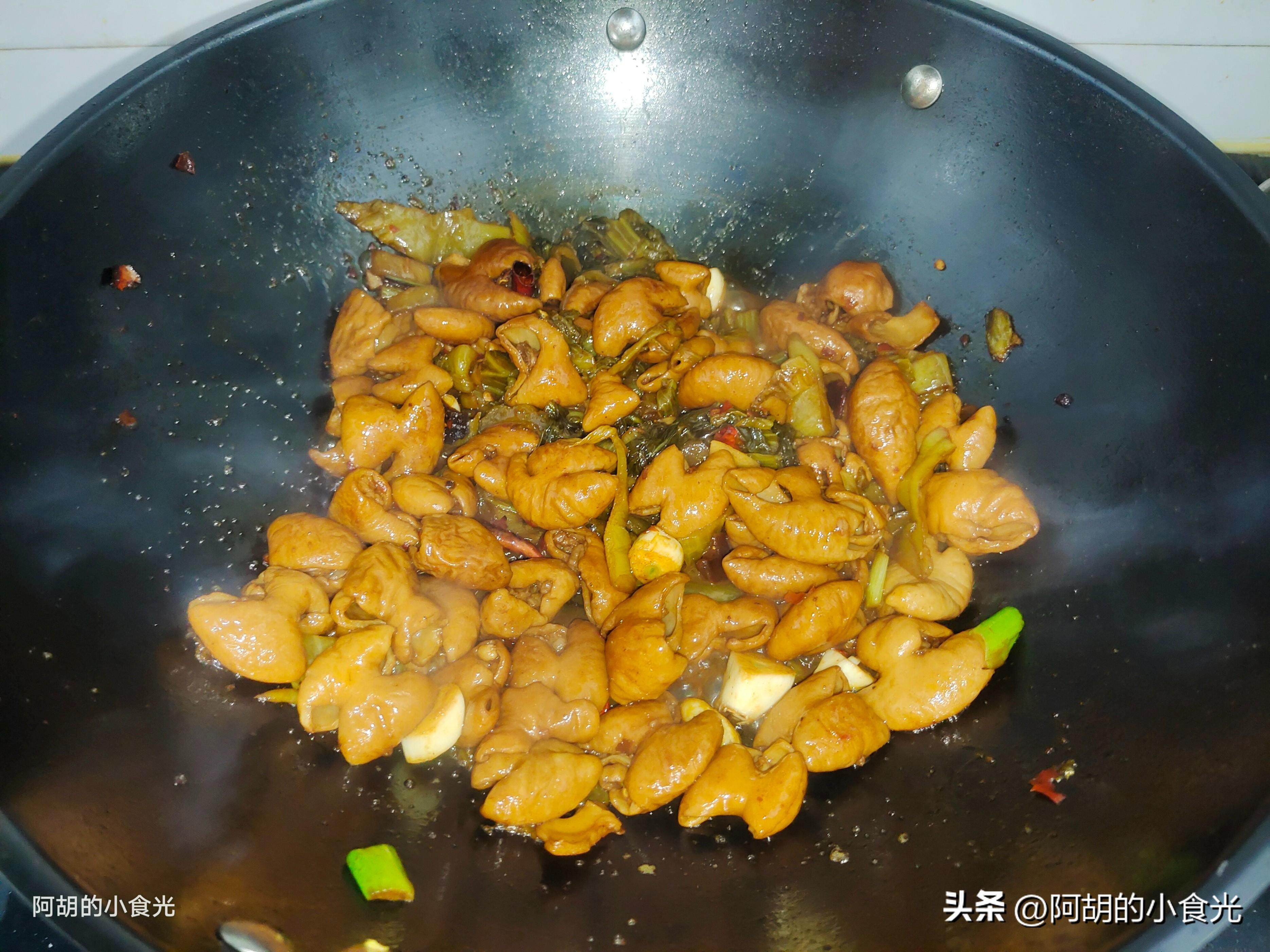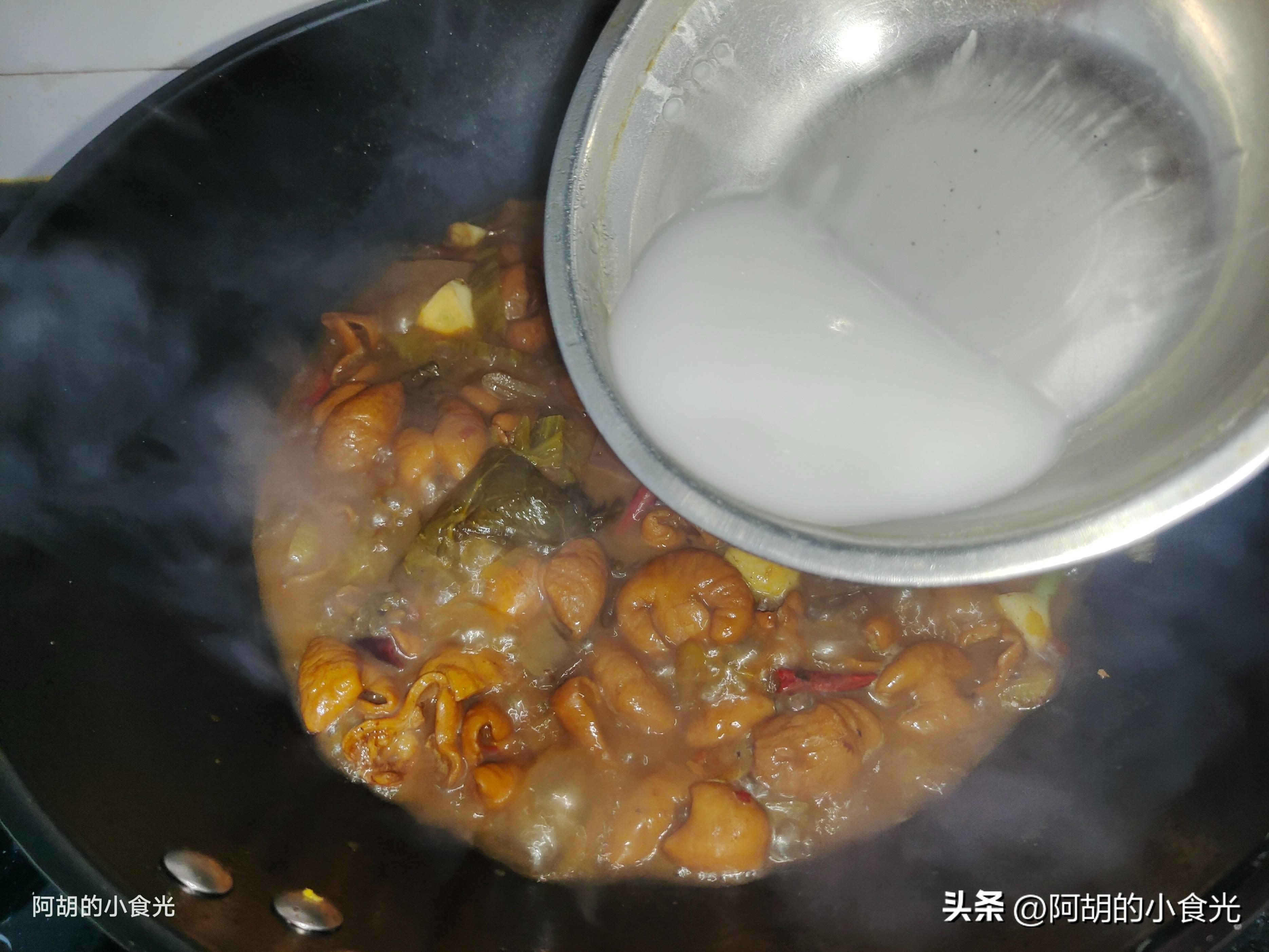 這是一道口味略重的菜餚,調料使用的比較多,再加上酸菜也有一些鹹味,這裏建議最後調味的時候食鹽的量要少加入一些。
