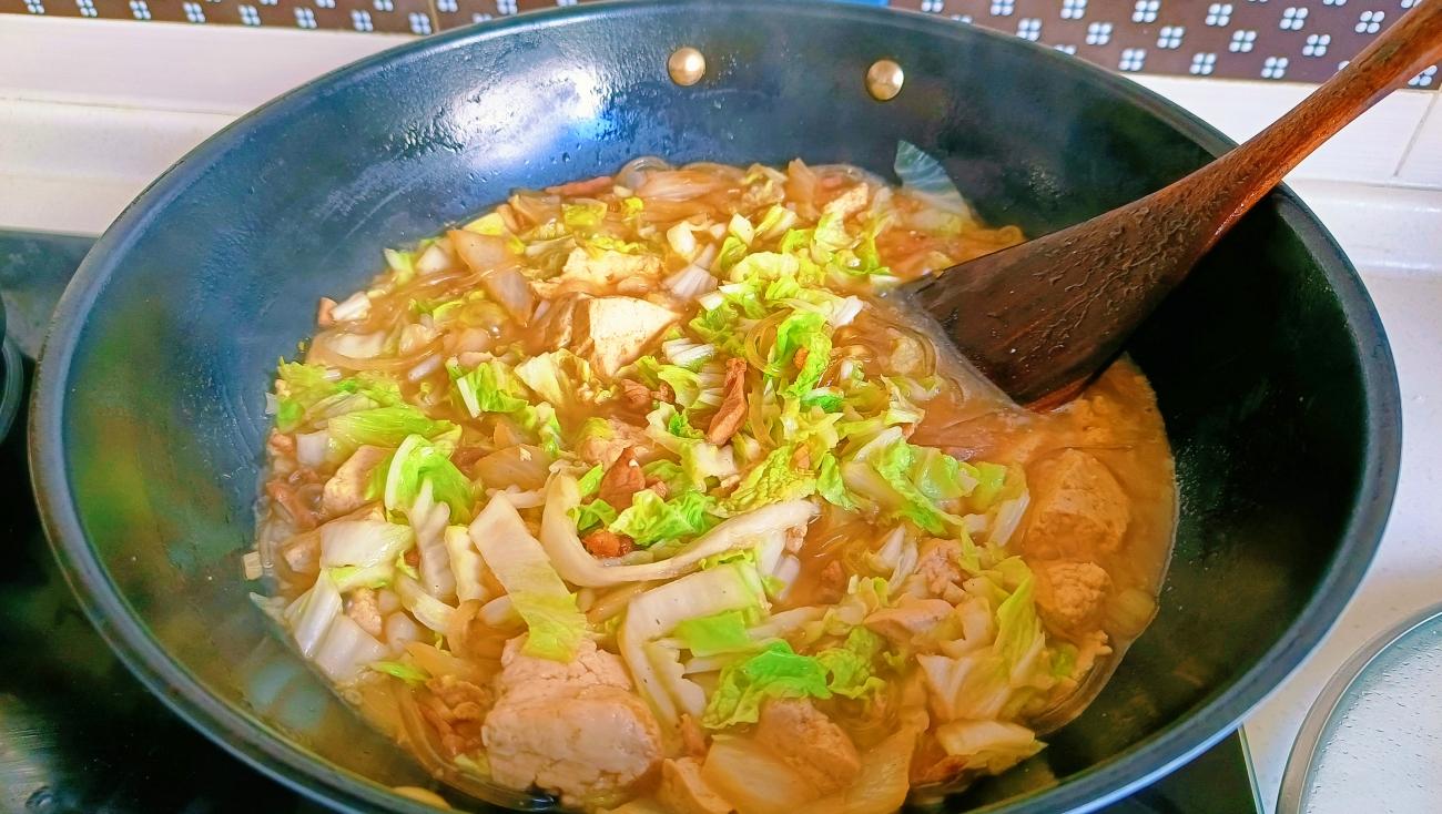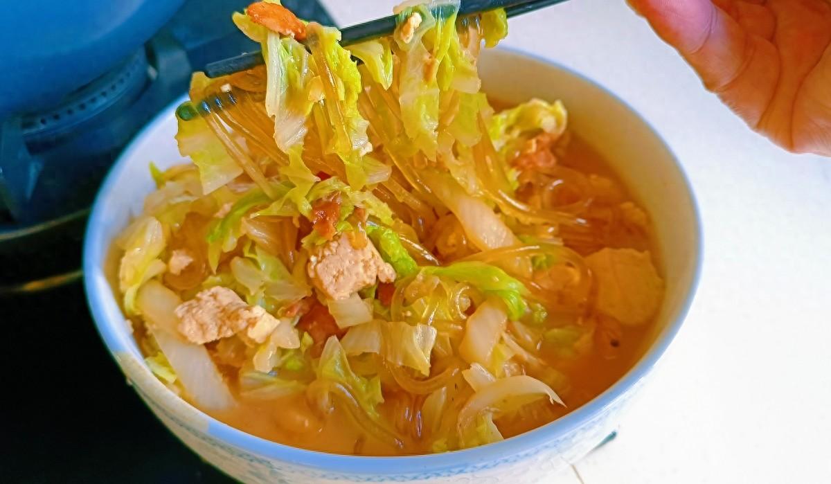 時間到了後就可以開鍋啦,盛出的時候,連湯帶菜舀上一大碗,粉條掛着濃稠的湯汁,豆腐吸滿了肉香,白菜清甜解膩,一口下去暖到心坎裏,秋冬天季節喫上這麼一碗太滿足了!