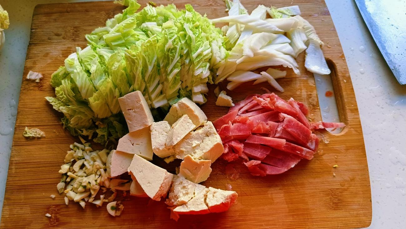 主料:白菜半顆(首選緊實的青幫白菜,燉着喫更香)、老豆腐一塊、紅薯粉條一把、豬肉適量(最好是用五花肉)
