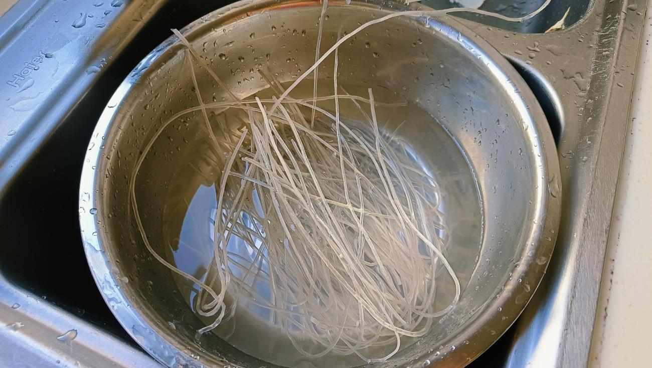 粉條放入盆中,加入沒過粉條的溫水,泡軟備用;