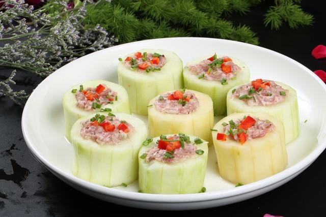 - 做法:絲瓜切滾刀塊鋪盤,豬裏脊切片,用生抽、澱粉、鹽抓勻鋪在絲瓜上,撒蒜末。蒸鍋上汽後蒸10-12分鐘。絲瓜清爽水潤,肉片嫩滑,湯汁拌米飯香到舔勺,輕盈無負擔。