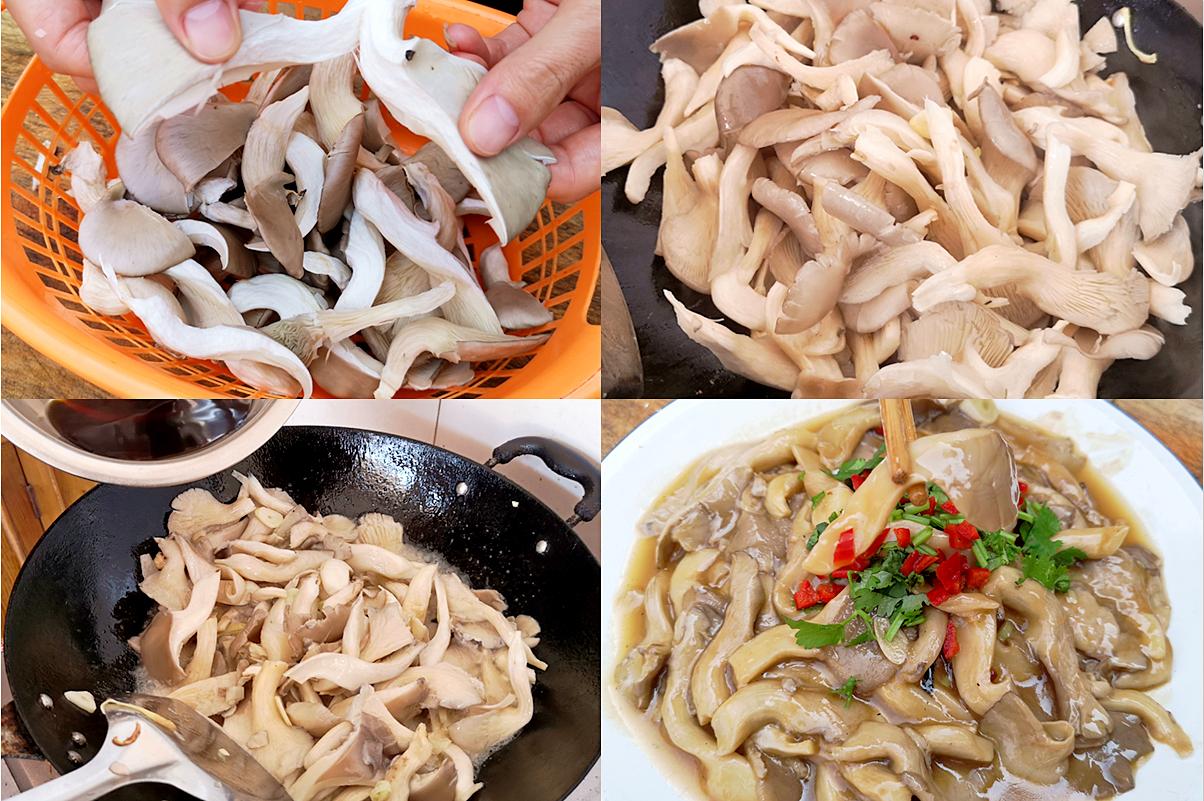 食材:平菇一大朵,豬裏脊一小塊,香菜、小米辣少許,蔥薑蒜,糖、醋、生抽、澱粉、鹽、白胡椒粉。