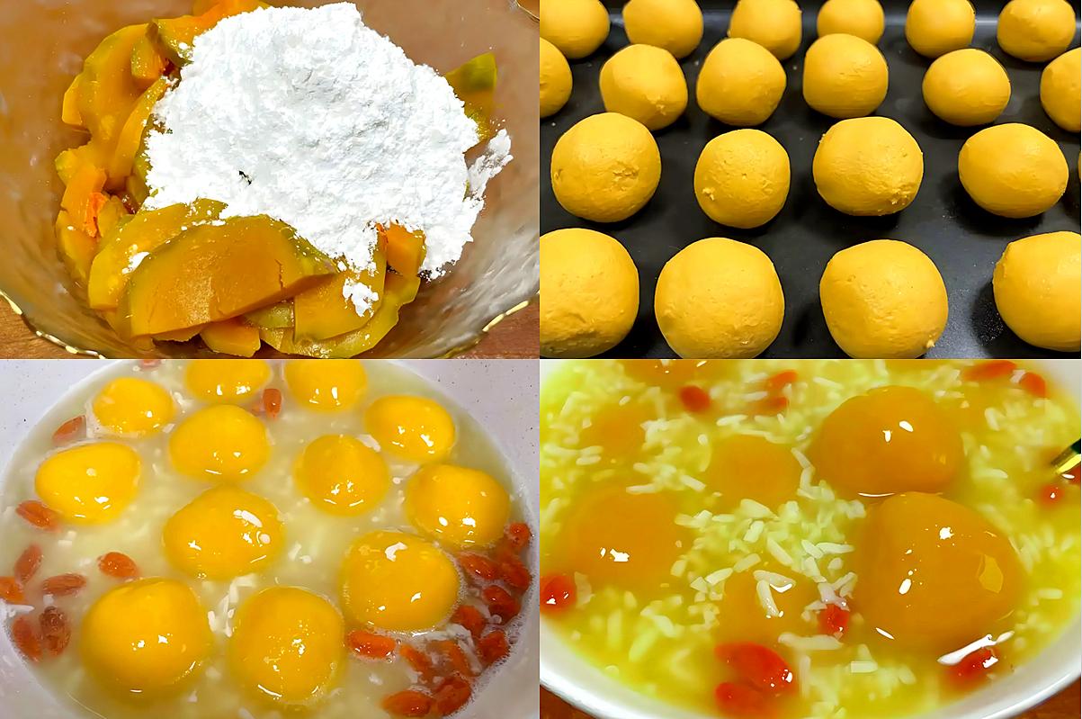 食材準備: 南瓜200克,糯米粉約150克,米酒半碗,枸杞一小把,白糖適量(根據口味調整)