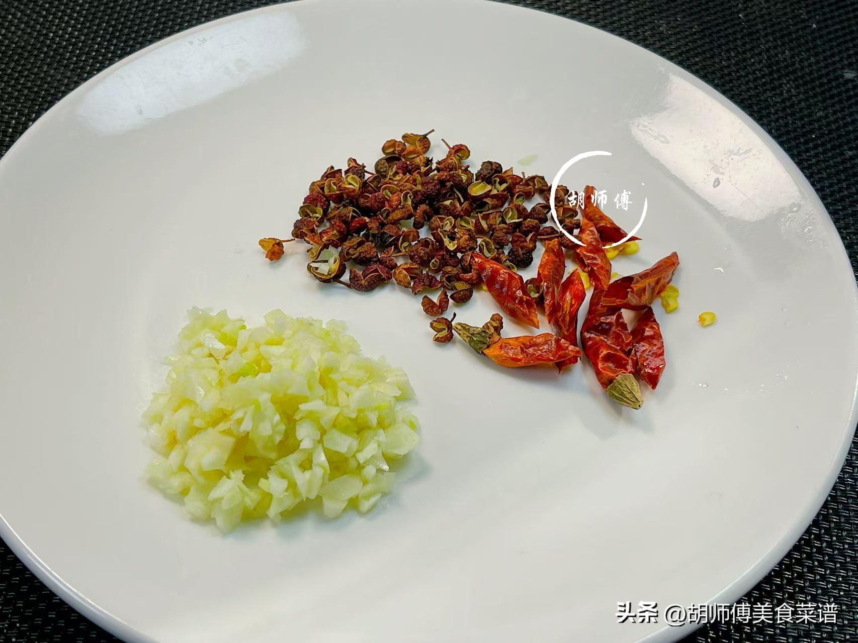 第二步:將花椒簡單沖洗一下瀝乾水分,把紅椒剪成小段,然後再把蒜切成碎末備用。