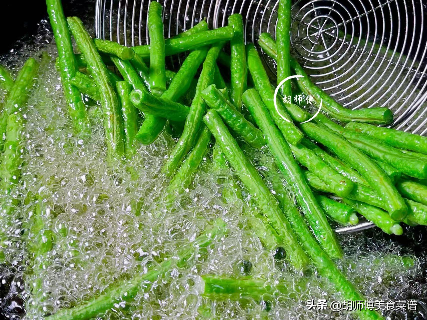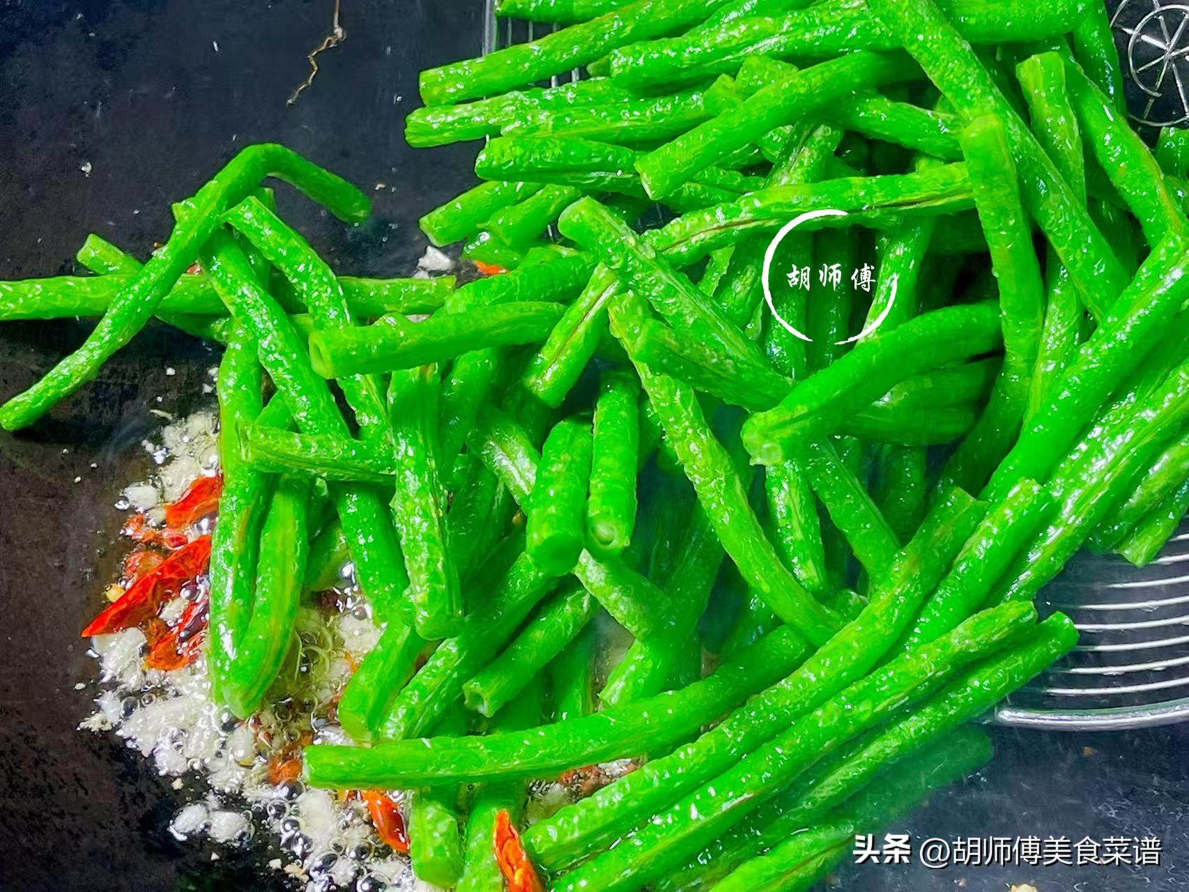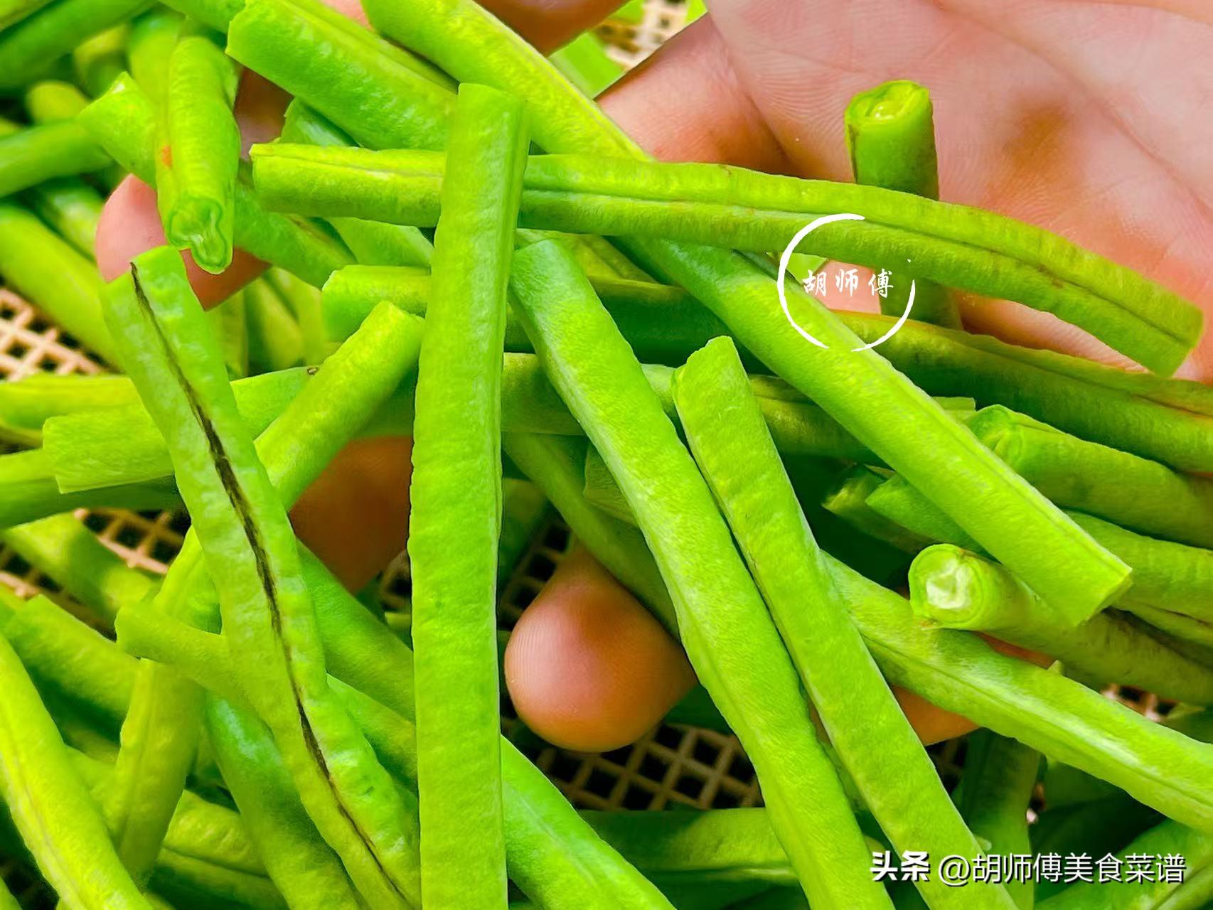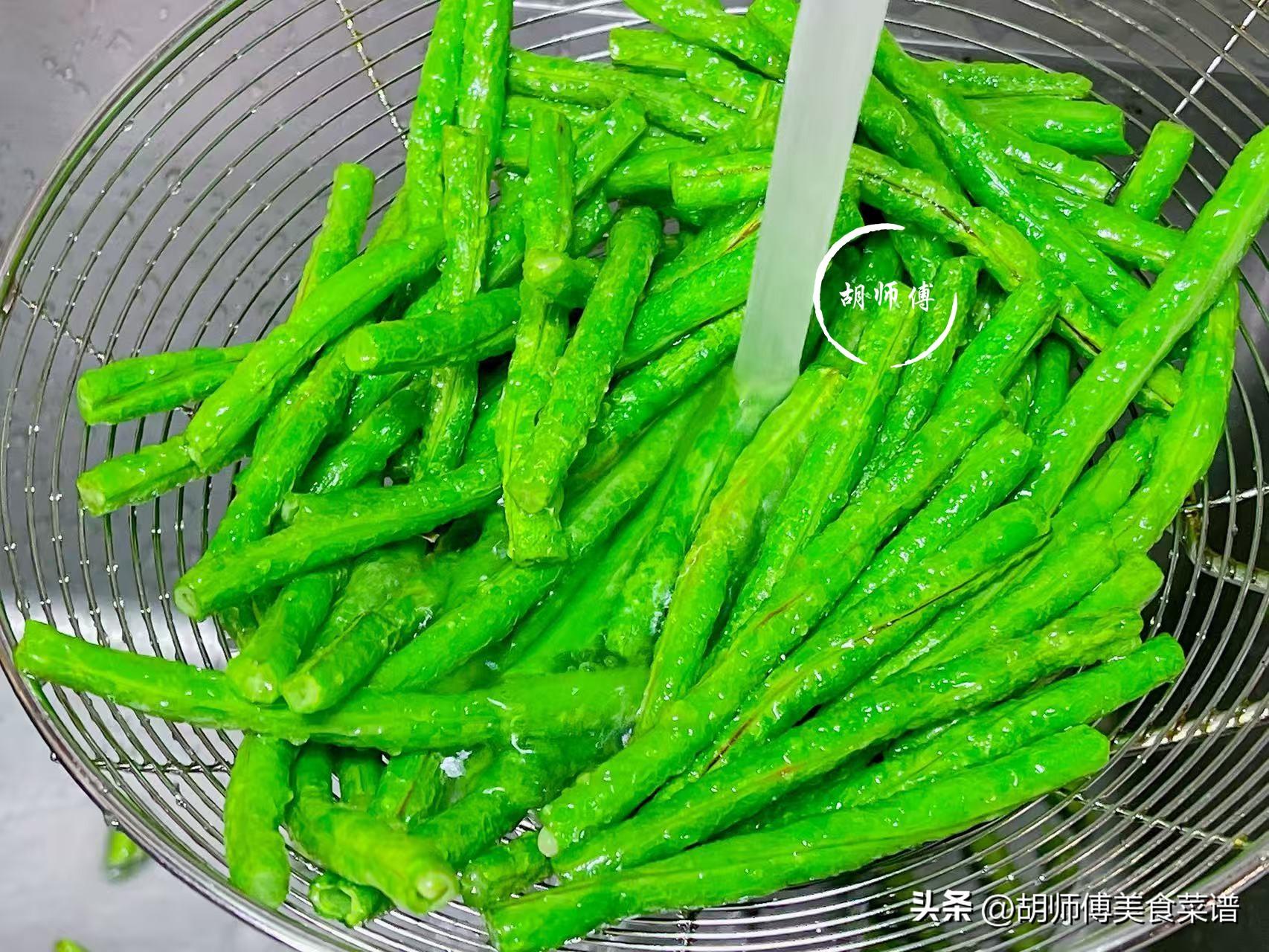 第一步:買缸豆時,一定要買外表翠綠,沒有外傷,捏着發硬的,這種缸豆最新鮮,喫着口感也是最好的。買回家的缸豆,先將它外表的莖掐的扔掉,然後把缸豆掰成5-7釐米的段狀,接着再將缸豆段放入鹽水中浸泡10分鐘後撈出,最後再用自來水將缸豆沖洗乾淨,瀝乾外表的水即可備用。