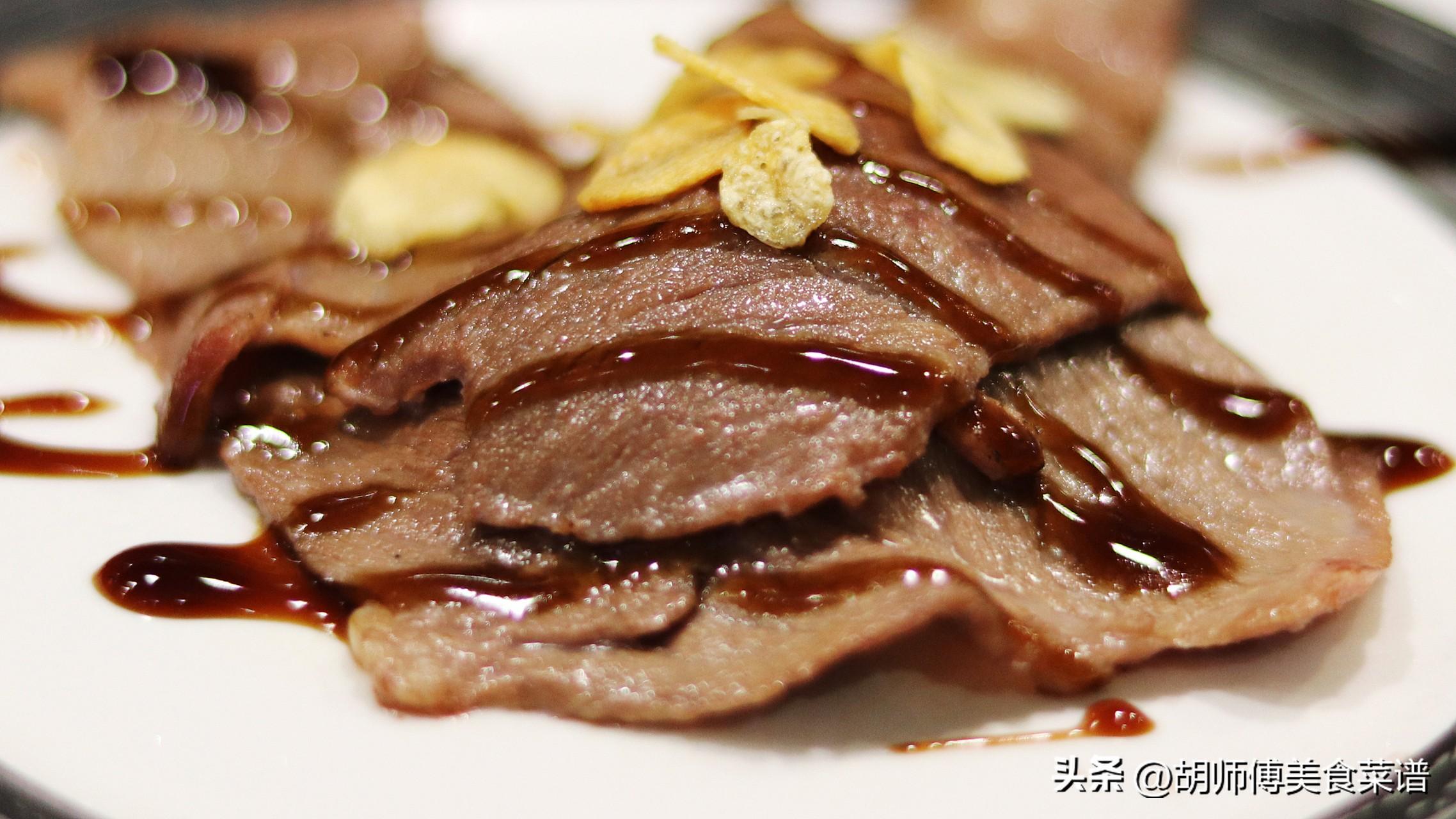 第四步:將醬好的豬心切成薄片後,淋一勺香油和醬汁拌勻即可食用。