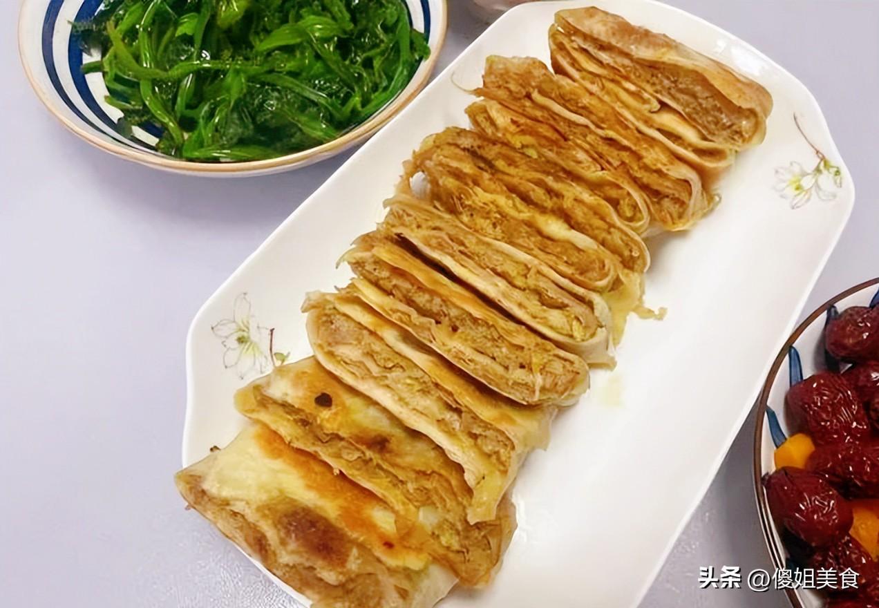 接下來就簡單了:把麪糰揉一揉,擀成一張大面皮,把調好的牛肉白菜餡均勻地鋪在上面,從一頭捲起來,兩端捏緊,防止露餡。電餅鐺預熱刷油,把包好餡的牛肉餅放進去,烙至兩面金黃就可以出鍋了。烙好的牛肉餅外皮酥脆,內餡多汁,香氣撲鼻,切成小塊後,方便拿取,也特別適合小朋友喫。