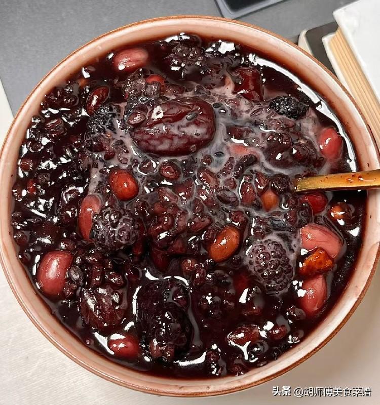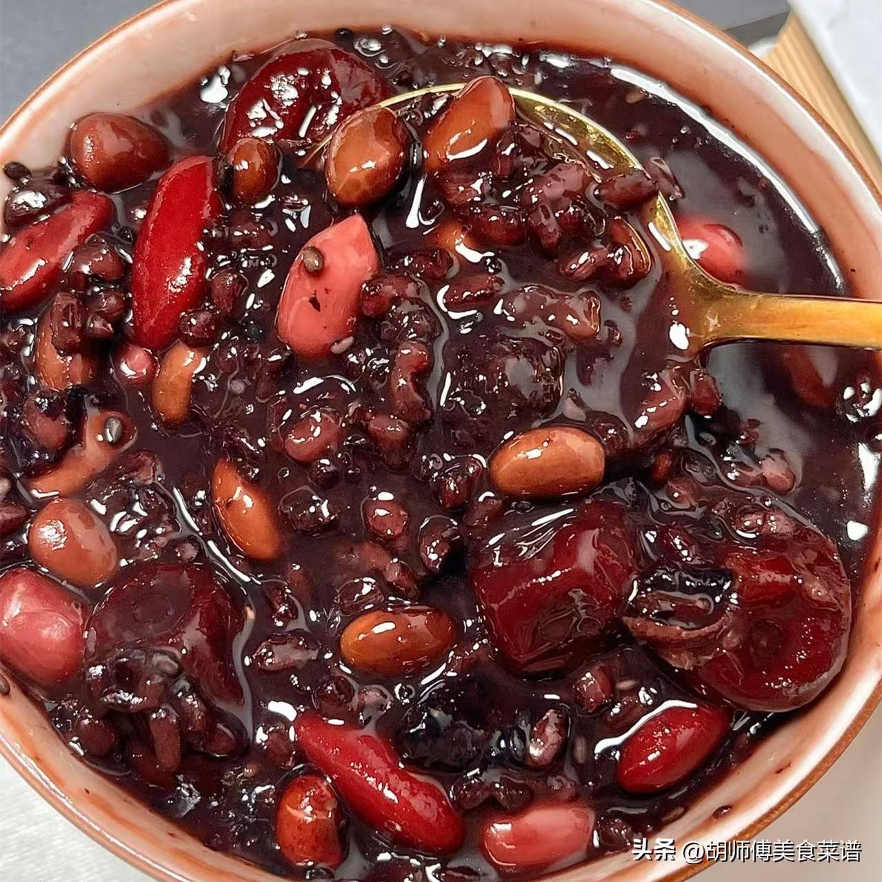 【食材準備】:黑豆20克、紅豆10克、花生10克、黑米20克、糯米20克、小麥10克、芸豆10克、白砂糖適量。