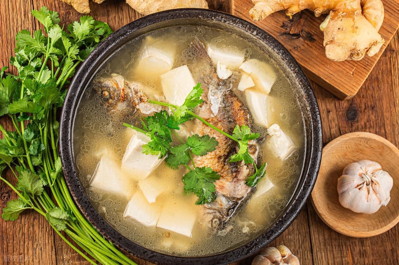 【鯽魚湯】先將鯽魚煎至兩面金黃,加入開水,放入豆腐塊,煮至湯呈奶白色,加入適量的鹽和蔥花調味即可。