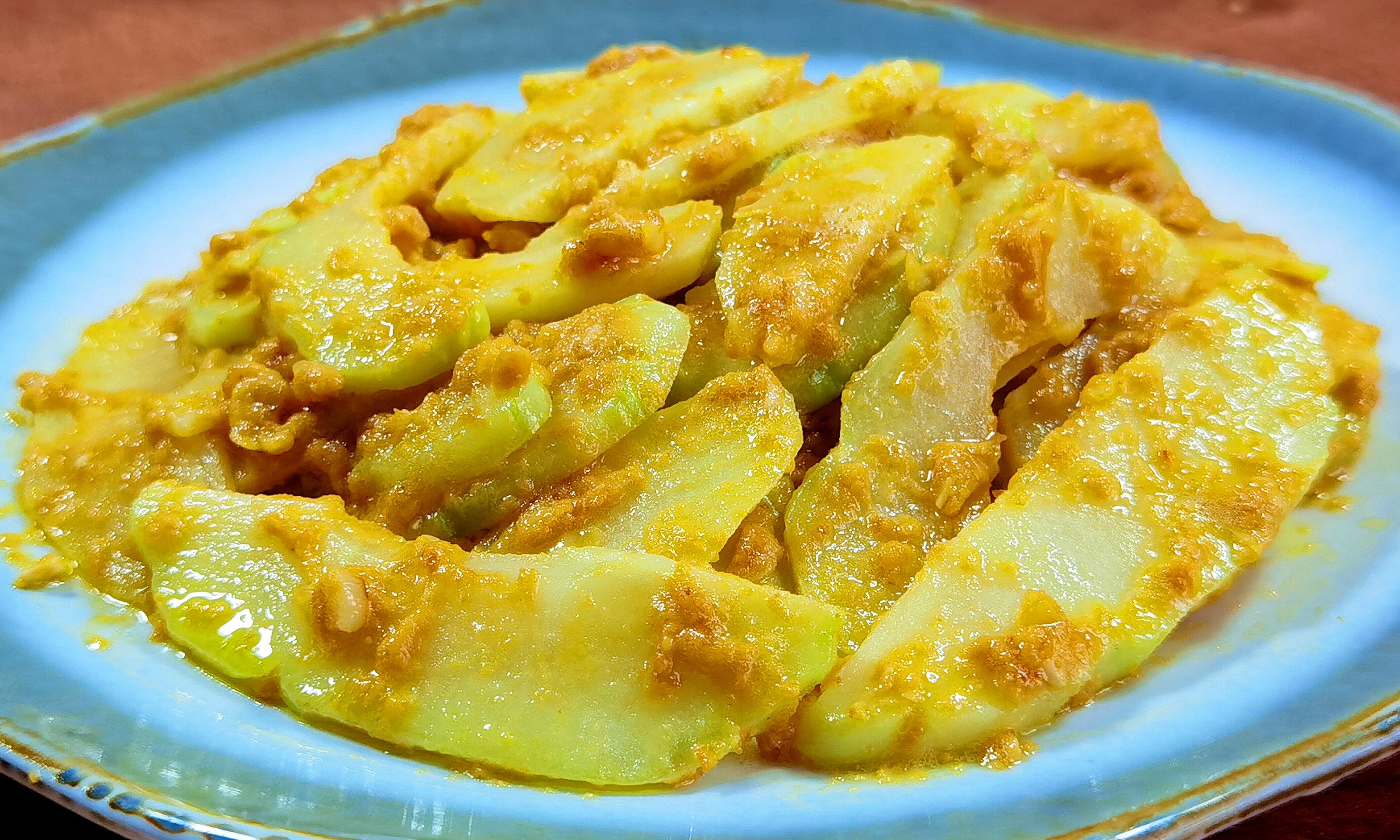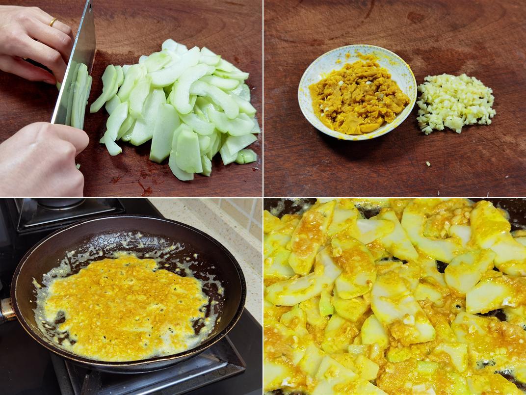 三、鹹鴨蛋黃炒佛手瓜片(鮮香下飯)