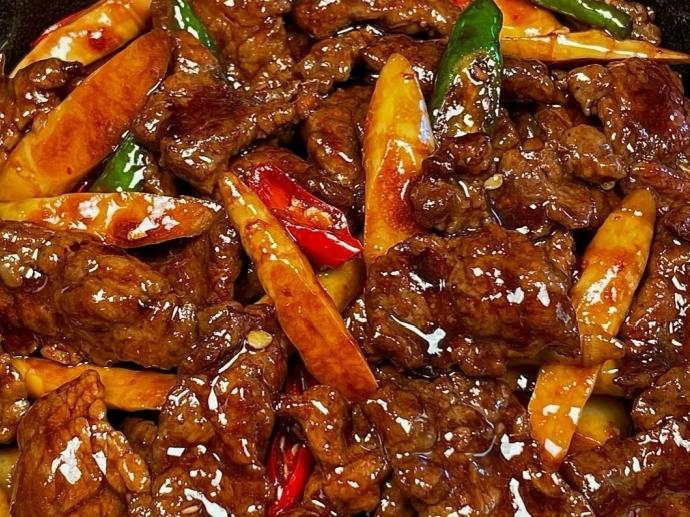 - 做法:牛肉絲用生抽、料酒、澱粉醃10分鐘;竹筍切絲焯水去澀。熱油炒香乾辣椒,放牛肉絲炒至變色,加竹筍絲翻炒2分鐘,加鹽調味。