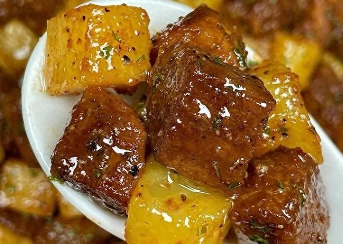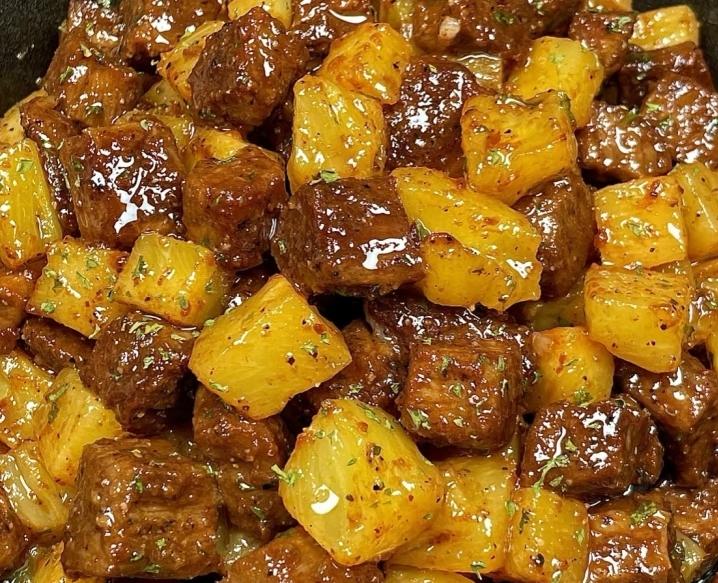- 酸甜的菠蘿中和了肉香,牛肉嫩到彈牙,一口一個停不下來。