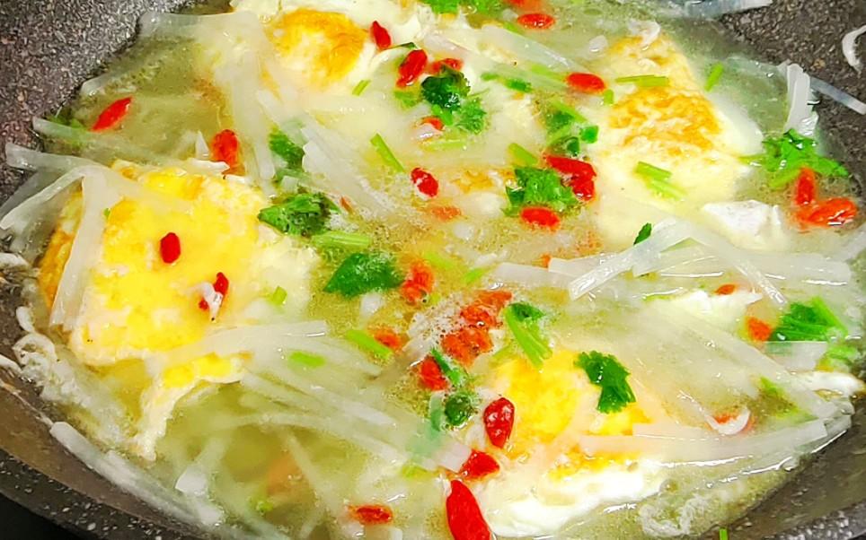 推薦喫法, 蘿蔔絲煎蛋湯。這道湯低卡健康,清淡鮮美,能潤燥暖身,適合全家人食用,簡單省事又能補充營養。