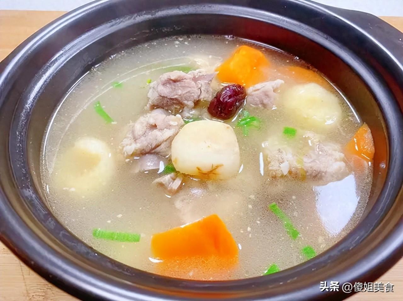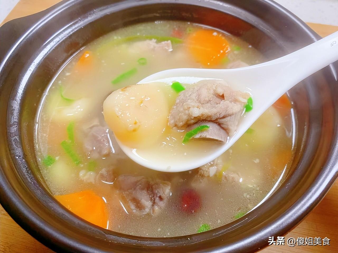 大約再燉一個小時,打開鍋蓋,香氣撲鼻而來,這時候的排骨已經酥爛到用筷子一夾就骨肉分離,荸薺變得半透明,胡蘿蔔軟糯香甜,最後加鹽調味,撒點香蔥點綴,別的什麼都不用放,這湯已經足夠鮮美。