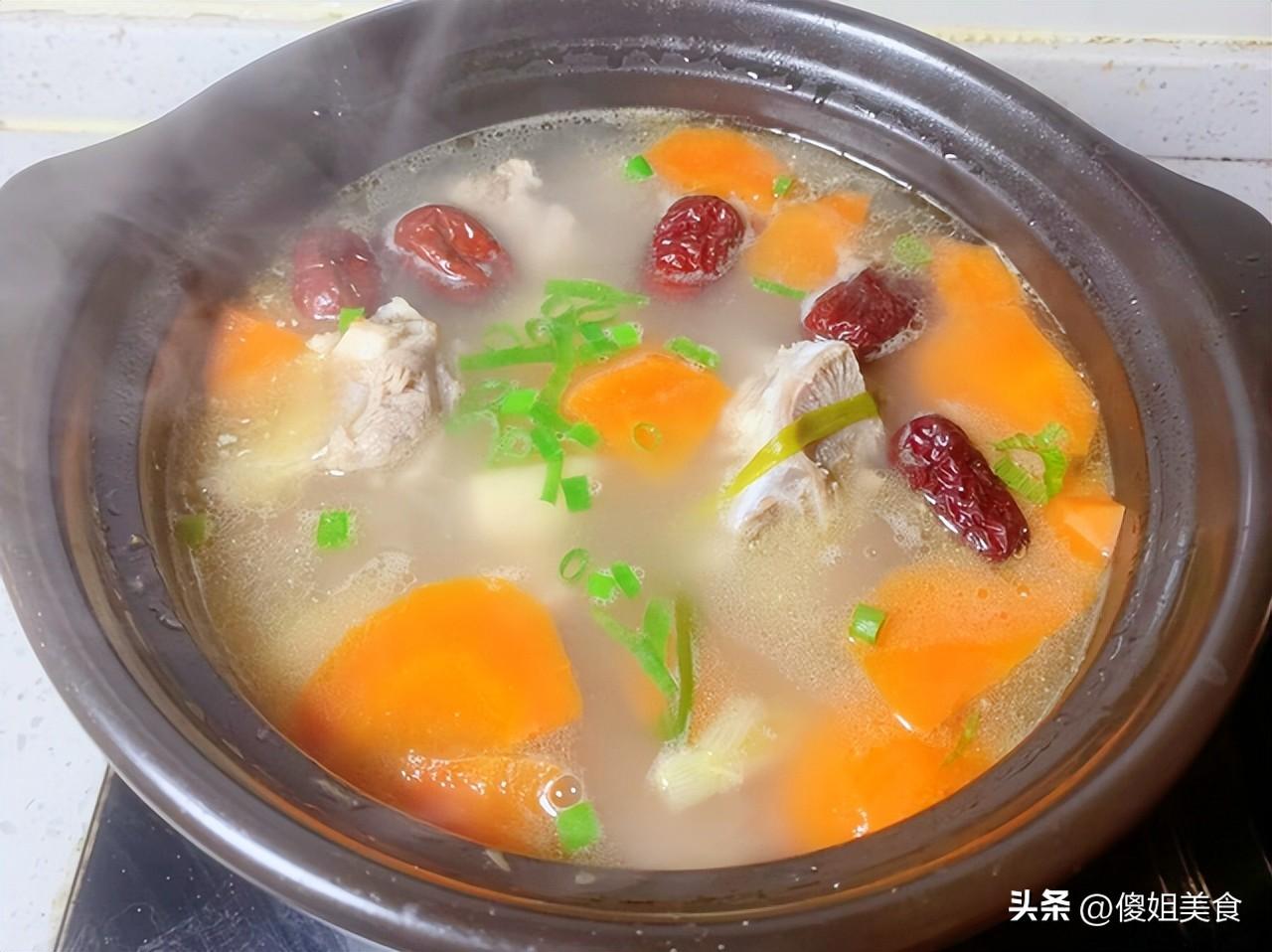 瞧瞧這鍋湯的顏值,橙紅的胡蘿蔔,深紅的棗子,潔白的荸薺,再加上粉嫩的排骨,光看着就讓人心情愉悅。乳白色的湯水冒着熱氣,整個廚房都瀰漫着一種難以形容的溫暖香氣——是肉香,又不完全是,還夾雜着一絲清甜,聞着就口水直流。