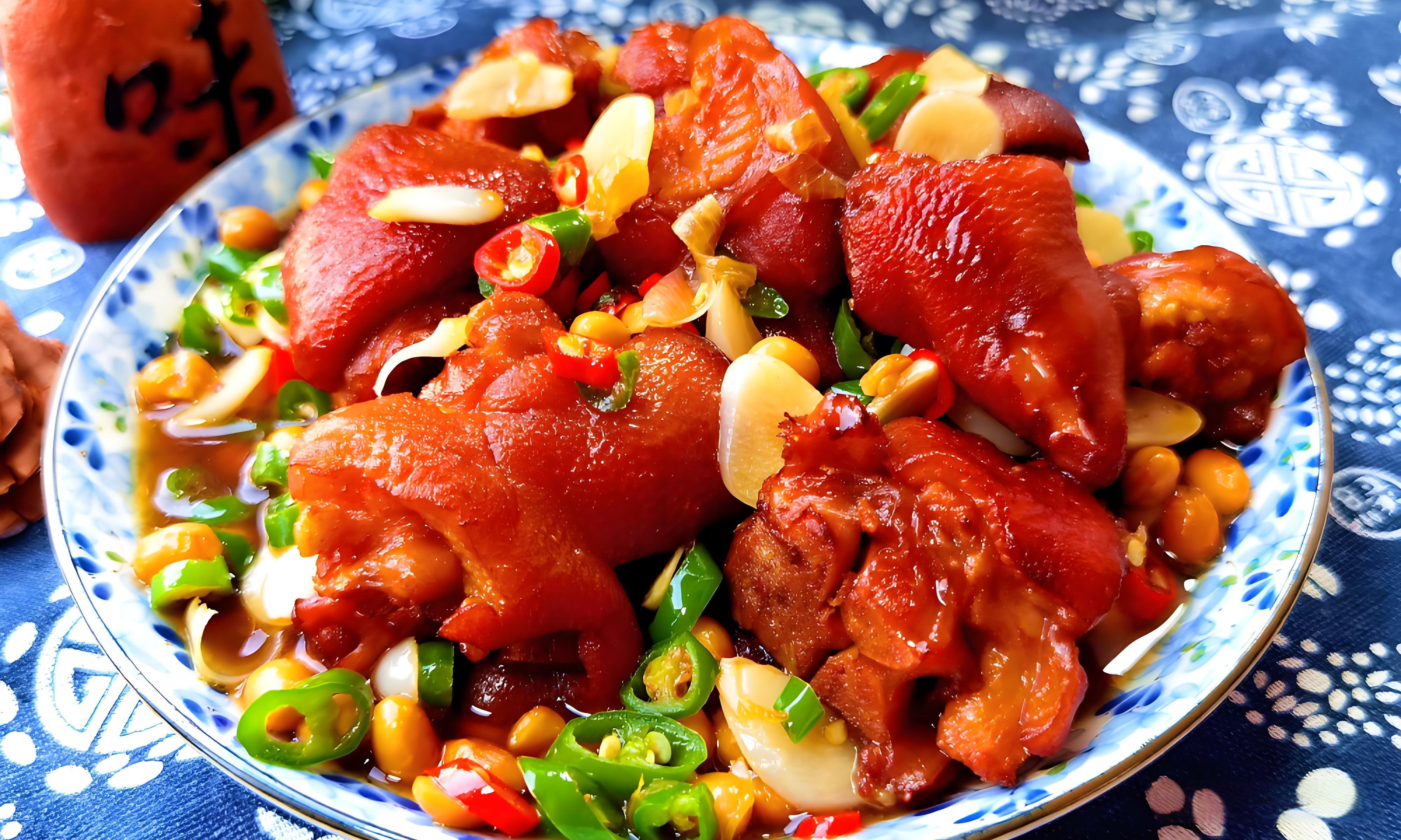 二、紅燒豬蹄燉黃豆 —— 濃香軟糯,補充“膠原”與鈣