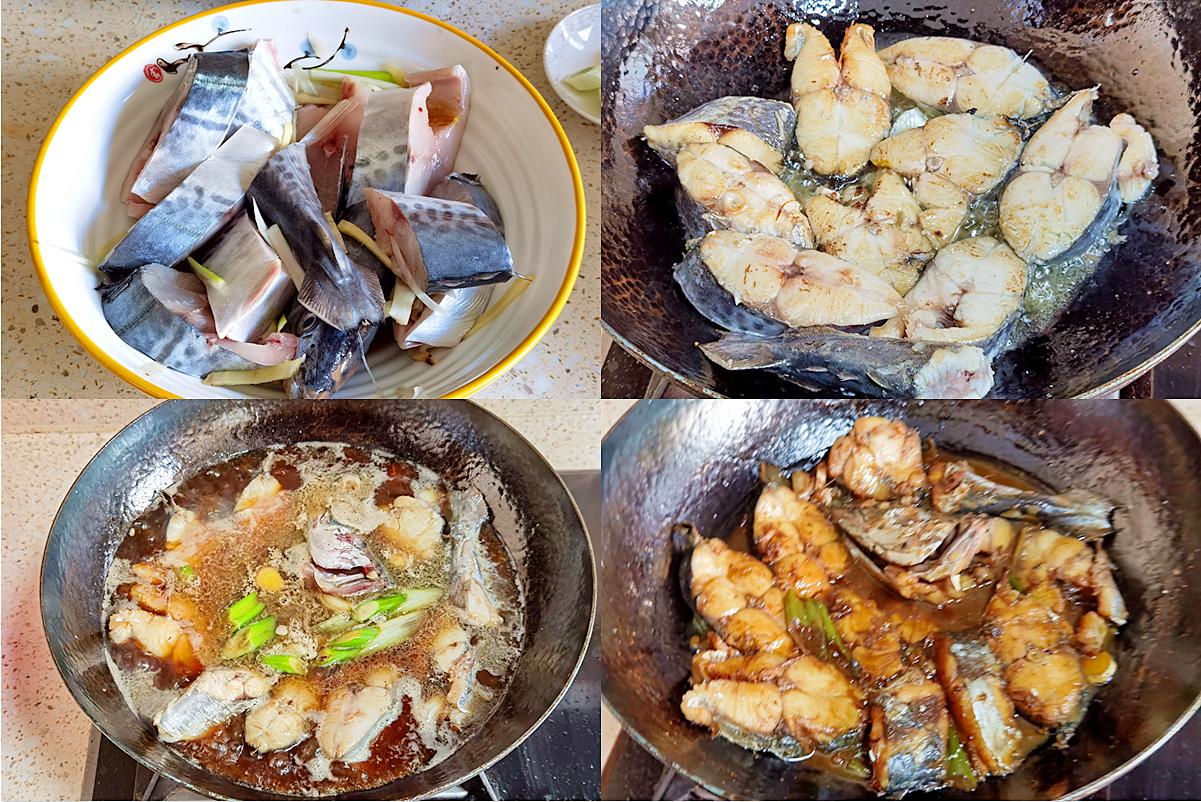 2. 鍋裏放油燒熱,下鮁魚塊煎到兩面金黃,盛出備用。