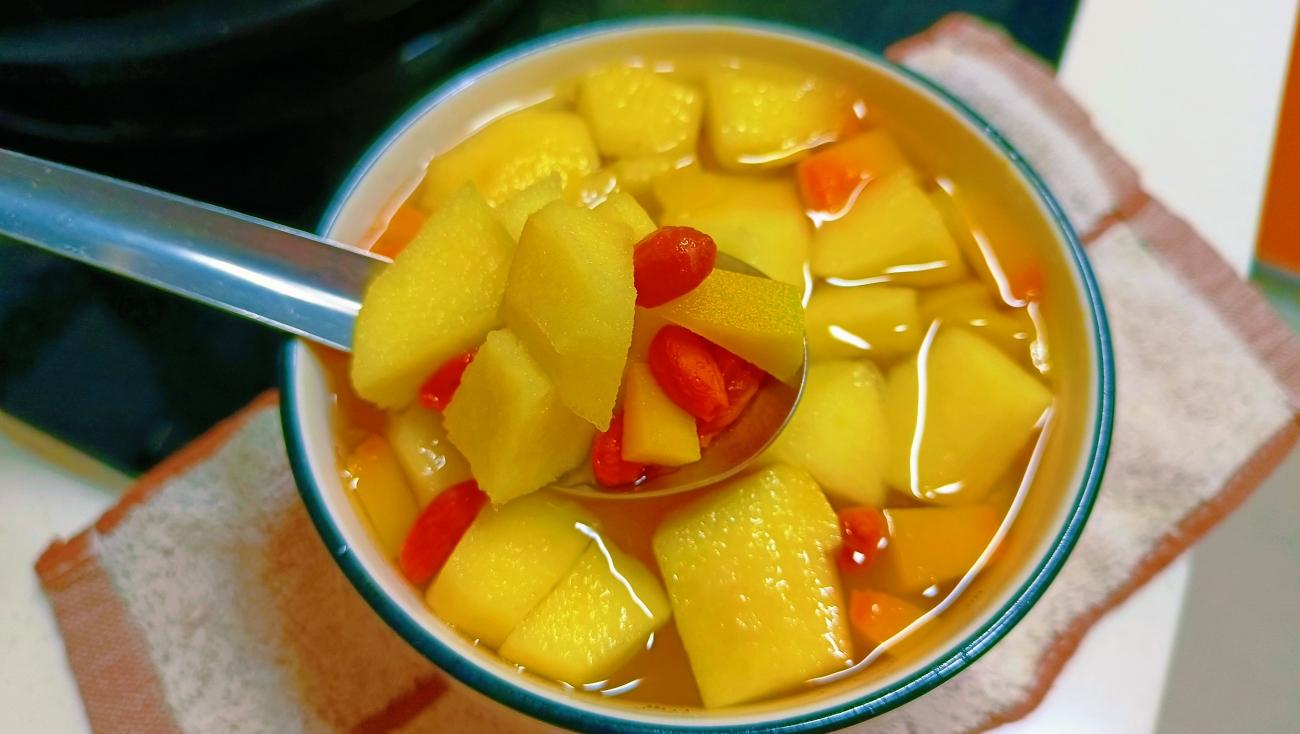 經常聽老人唸叨“一天一蘋果,醫生遠離我”,中醫說蘋果健脾益胃、生津潤燥。蘋果蒸軟以後膳食纖維更溫和,健脾益胃不刺激腸胃;南瓜富含果膠,能保護胃黏膜,還能促消化;枸杞滋陰潤肺,它三個搭配着一起蒸出的甜湯清甜潤滑,而且甜而不膩,老人喫不怕塞牙,小孩子喫能補維生素,脾胃虛弱、容易口乾咳嗽的人常喫也舒服。