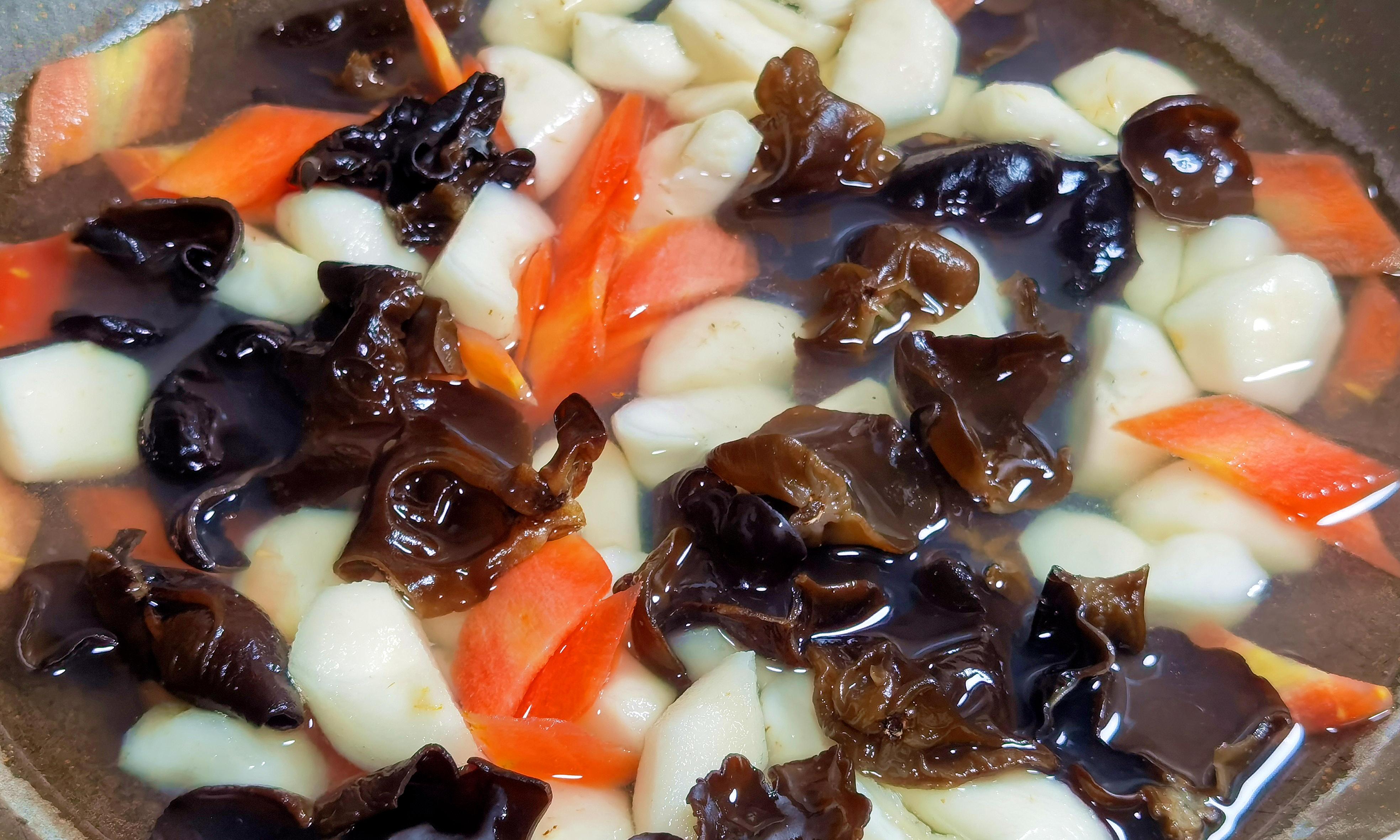 今天咱們不燉湯,就來道快手小炒——馬蹄胡蘿蔔炒黑木耳。這道菜色彩鮮亮,口感豐富,做起來簡單,喫起來爽口,保管您喫一次就愛上!