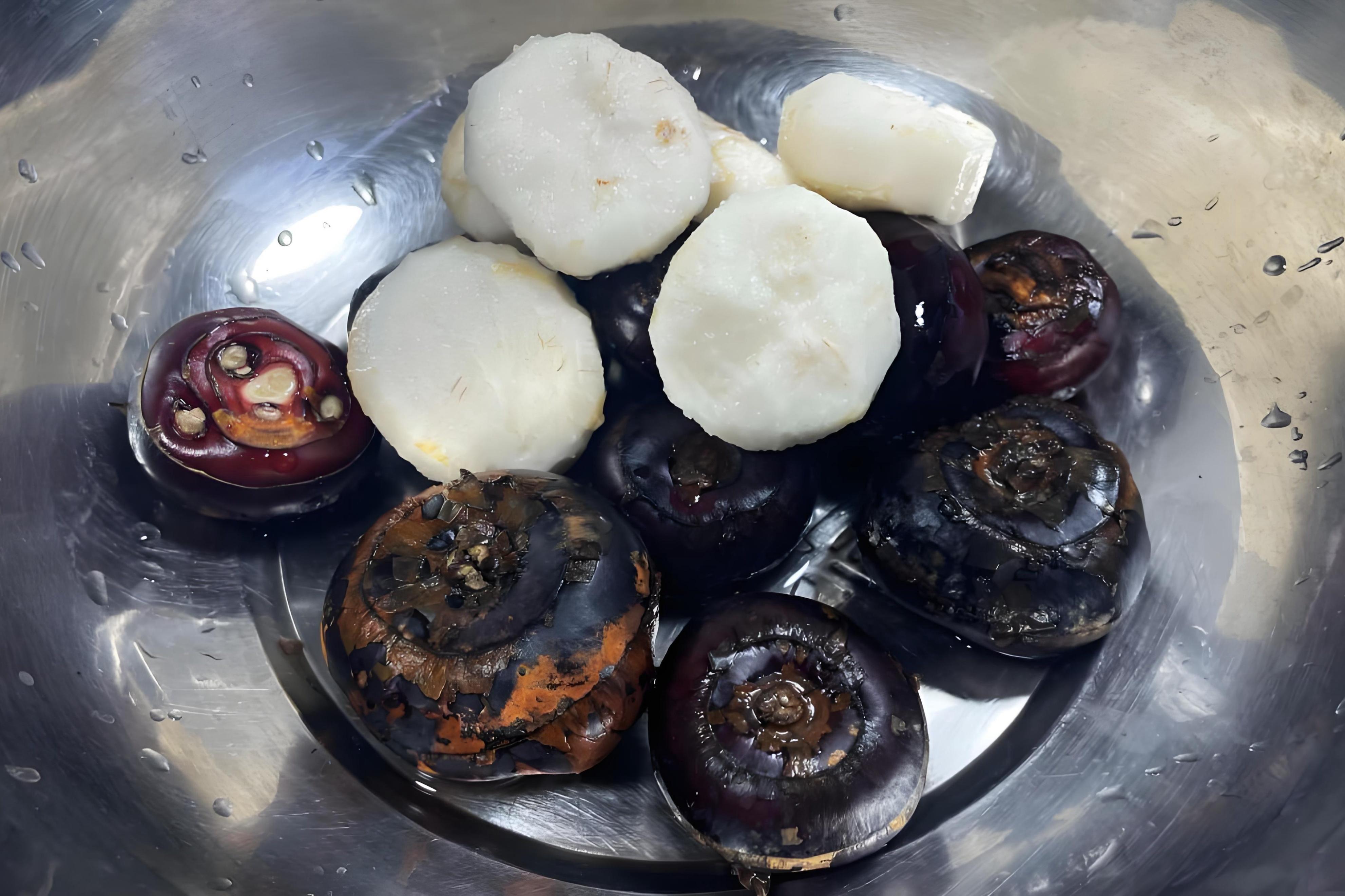 這是唯一有點“麻煩”卻充滿樂趣的步驟!新鮮馬蹄表面有薄薄一層紫皮,還帶着些泥土。先用水沖洗掉表面泥沙,然後用小刀輕輕削去外皮。有個小竅門:如果馬蹄特別新鮮硬實,可以先在沸水裏焯燙30秒,撈出過涼,皮就特別好剝了。去皮後的馬蹄白白淨淨,像個大珍珠,忍不住生喫一個——咔嚓一聲,清甜汁水瞬間在嘴裏漾開,特別提神!接着把馬蹄切成厚片,備用。