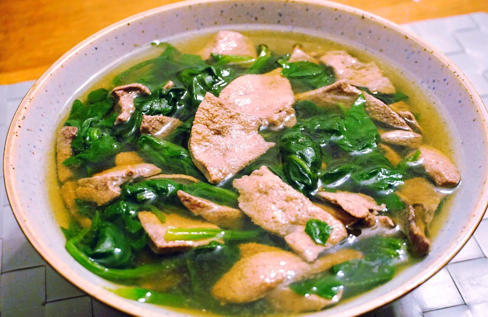 推薦喫法,菠菜豬肝粉絲湯。一種經典美食,豬肝鮮嫩,菠菜翠綠,做好的湯特別鮮。