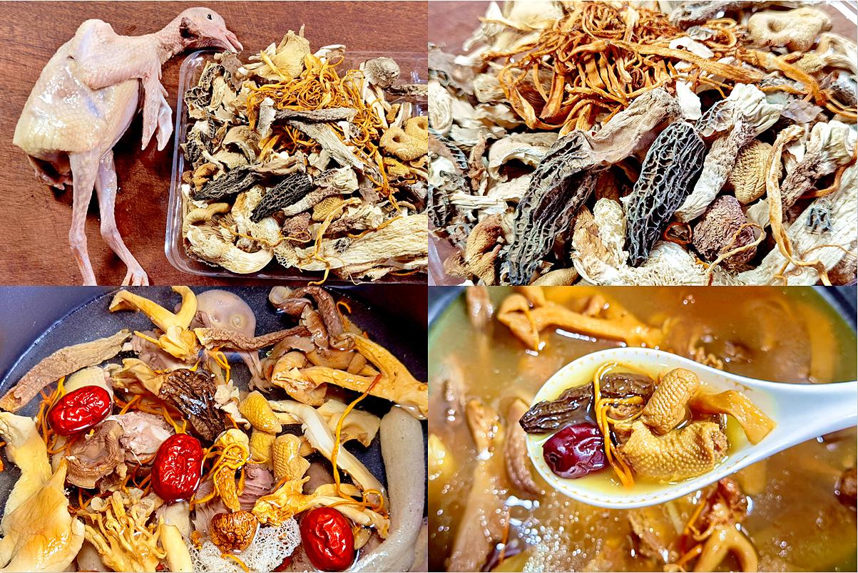 1. 準備幹菌菇:羊肚菌、蟲草菇、香菇等,用溫水泡發半小時。紅棗洗淨。