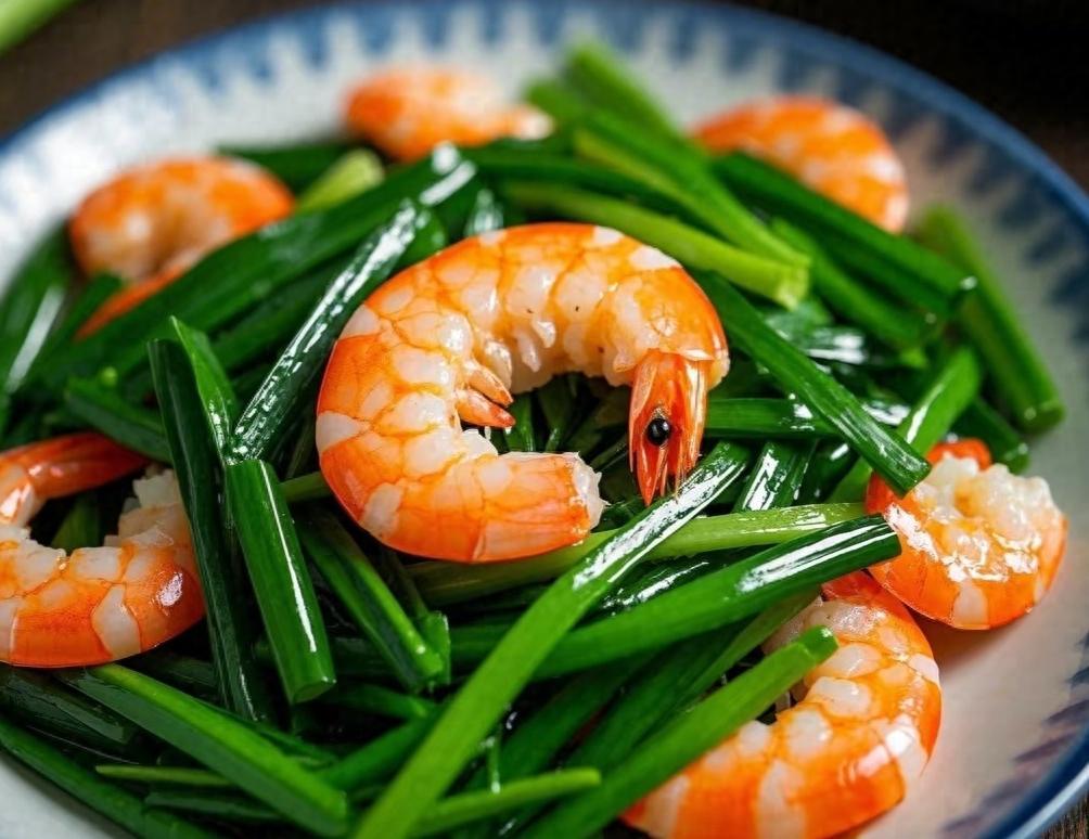 推薦喫法, 韭菜炒蝦仁。鮮蝦仁補腎陽,搭配韭菜溫補效果更強。做好的美食顏色好看, 味道鮮美。