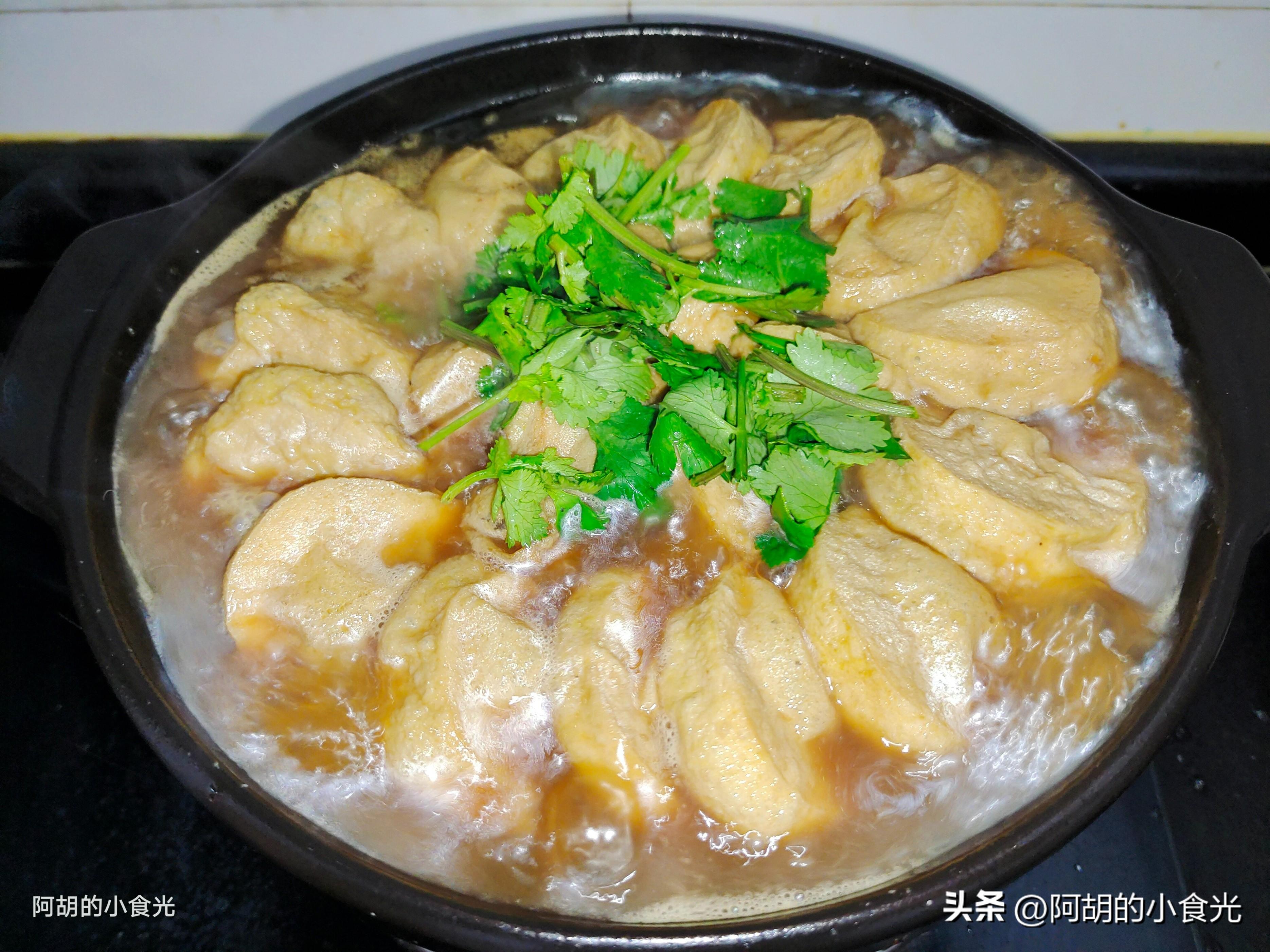 第五步:把燒好的湯汁直接倒入素雞砂鍋中,料汁的液麪要稍微高一些,保證剛剛可以碰到素雞即可,而後不用加蓋就這樣大火煮一煮,煮個三四分鐘左右,讓素雞充分地吸收湯汁,時間到後關火,撒入一些香菜就可以上桌開喫了。天冷就來這一鍋,素雞灌滿了湯汁熱乎乎的,一口軟嫩爆汁,開胃又下飯,感興趣的一定要試一試這個做法。